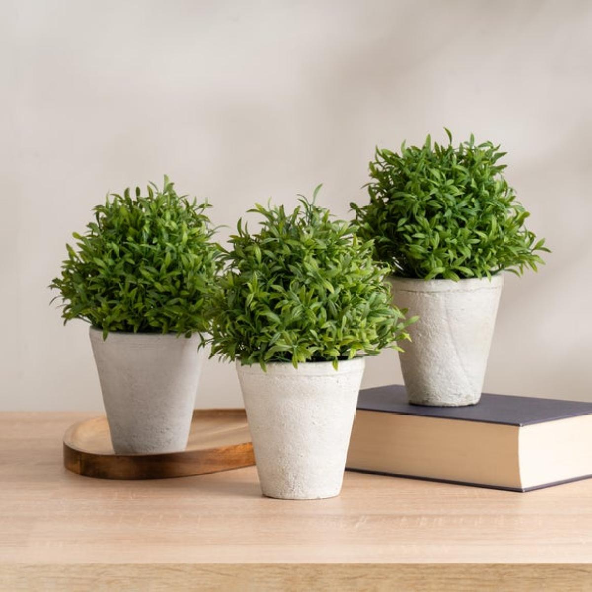 Set of 3 Artificial Topiary Plants in Cement Plant Pots