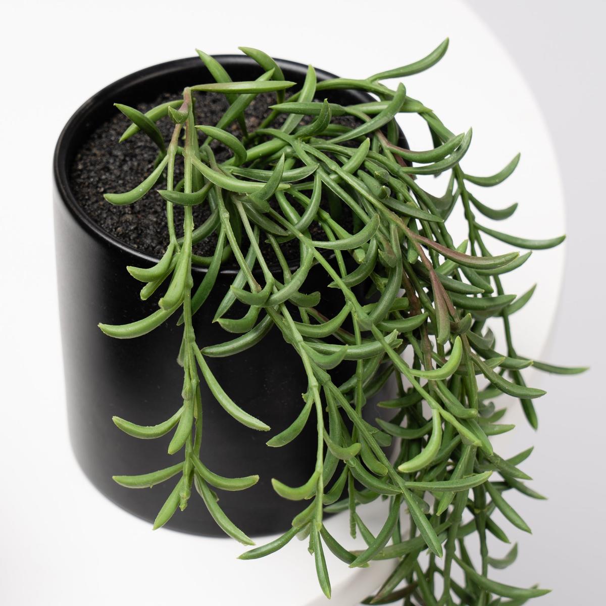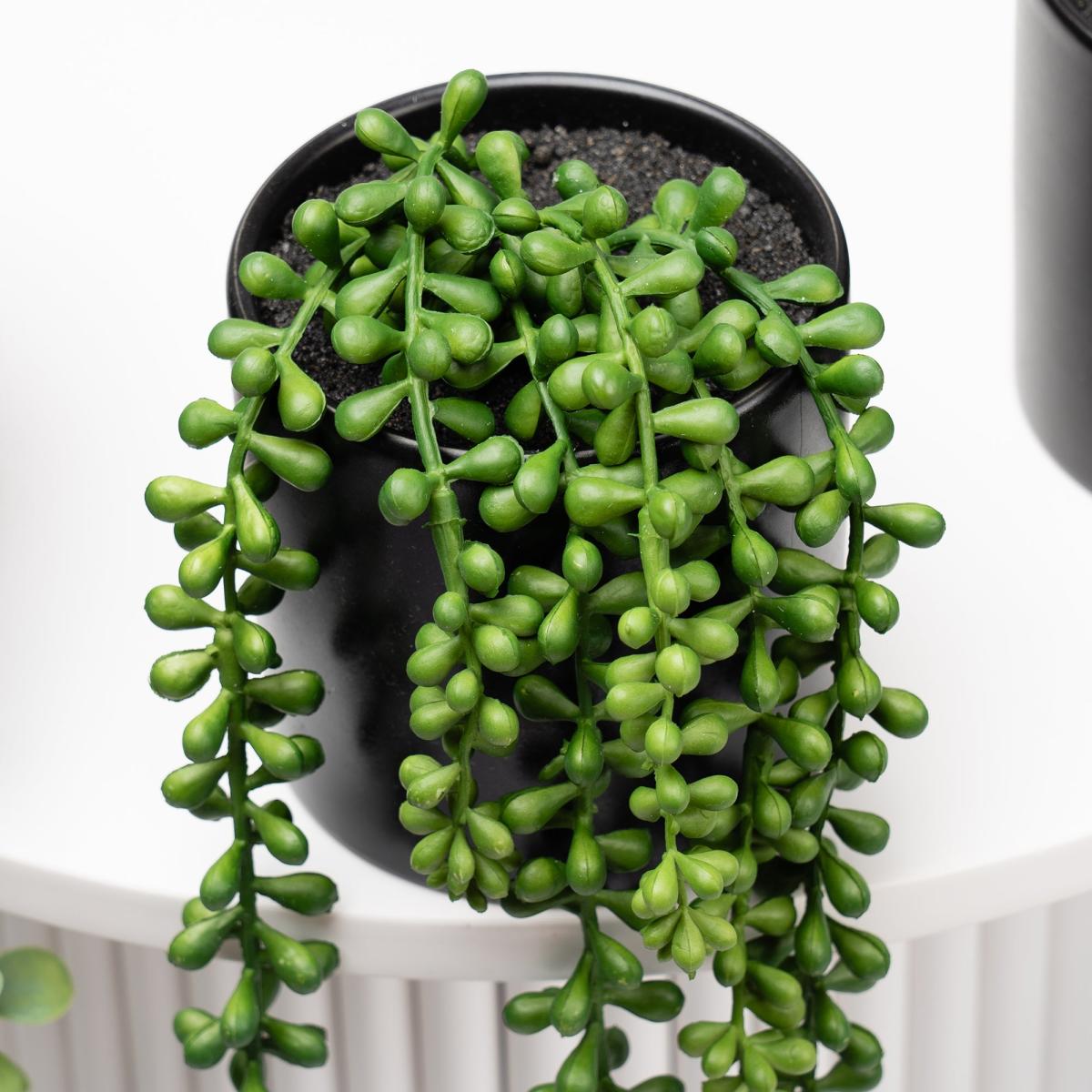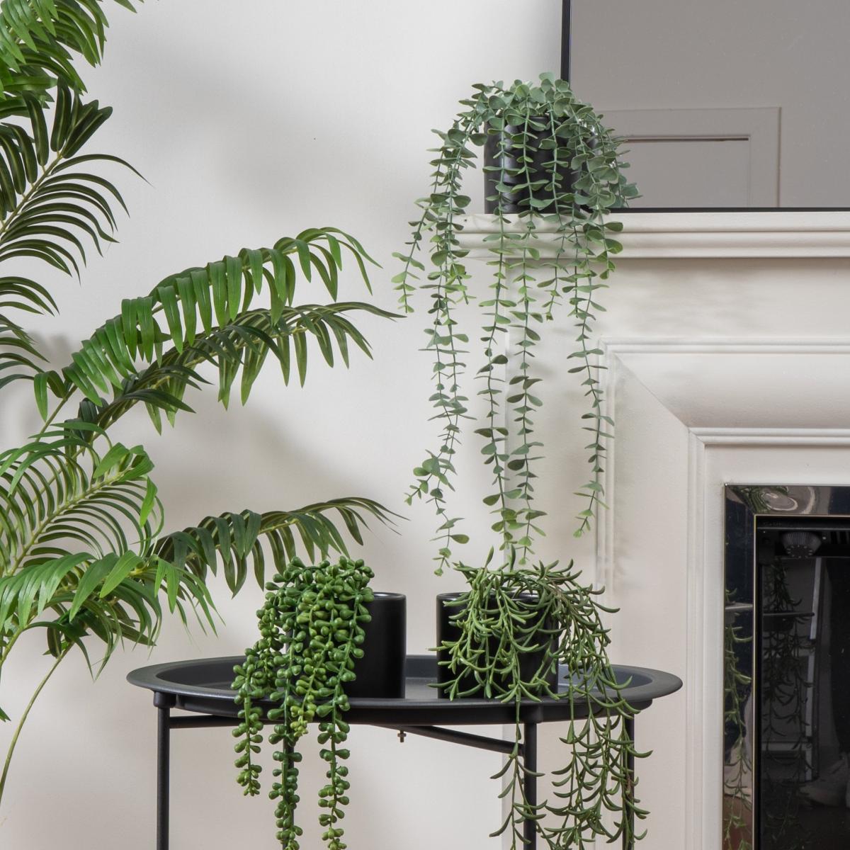 * Set of 3* Black ceramic pots* Realistic look* Trailing artificial plants Bring greenery into your home with this set of 3 artificial trailing plants. Designed to look incredibly realistic, they add a fresh touch to any room without the need for watering or maintenance. Perfect for shelves, side tables, or windowsills, these plants offer a lush, natural feel in a stylish and fuss-free way. The plants range in length for a varied look. Wherever you choose to place them, these plants are sure to brighten up your space.