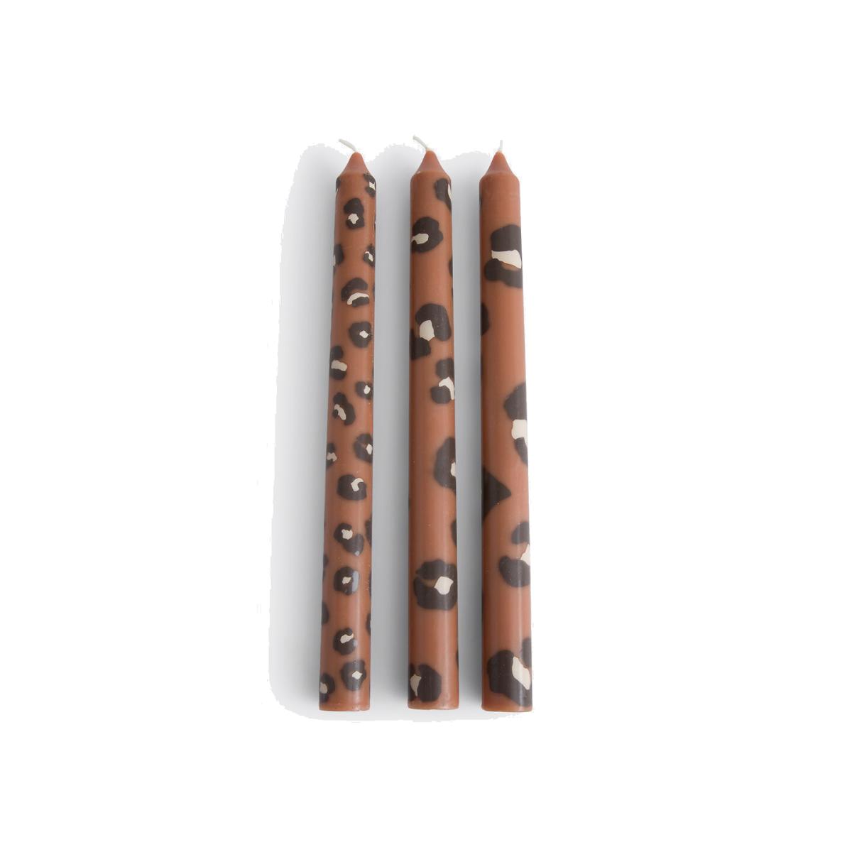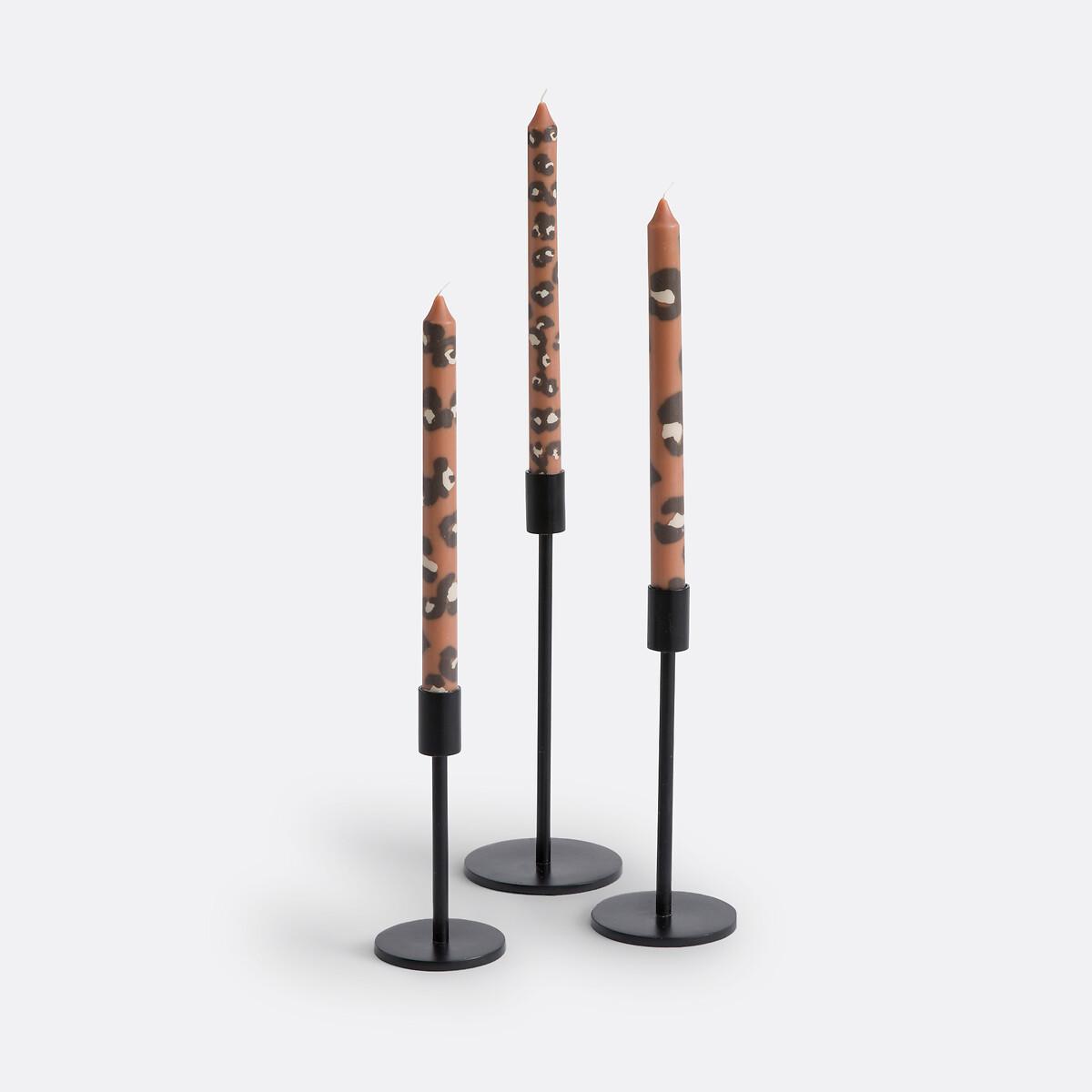 This set of 3 candles features a charming animal print. Ideal for creating a soft, warm atmosphere. A signature design by La Redoute Interiors. Product Details • Smooth wax candles • Leopard print on brown background • Sold in packs of 3. Dimensions • Diameter: 2cm • Height: 25.4cm