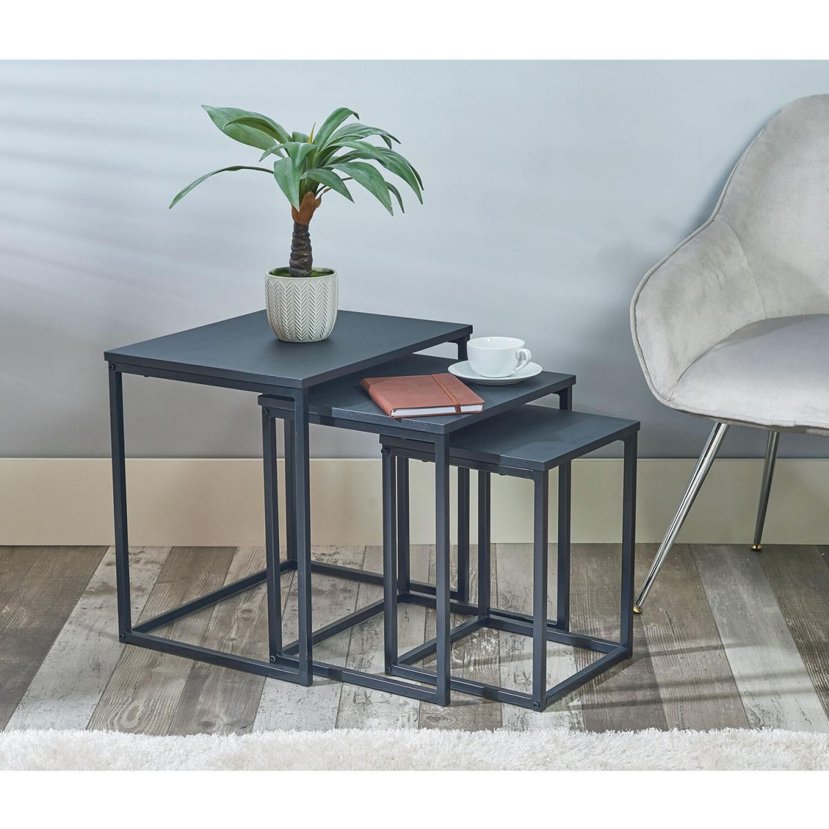 A fusion of style and convenience, this Set Of 3 Black Nest Tables can be effortlessly positioned around your living space for a convenient surface wherever you, your family, or guests. Designed with a timeless black finish, these gorgeous side tables will lend themselves to any modern or classic stylings and can be easily slotted together when not in use to save space in your home.