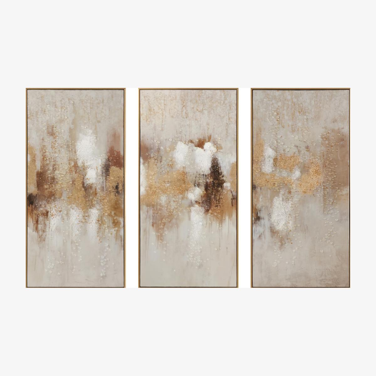 Set of 3 Bronzite Foiled Jewelled Art - Beige