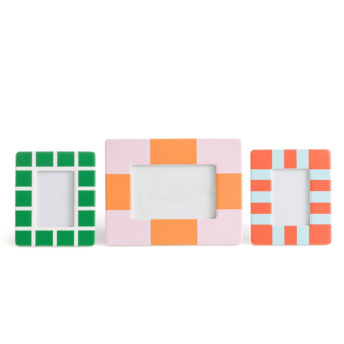 I love this set because of its bold, playful colour blocking which instantly adds a contemporary vibe to any space. These frames work particularly well in modern or eclectic interiors, adding a pop of colour to shelves, sideboards, or mantels. For styling tips, try grouping them together for a striking display or mixing with other textured accessories to create visual interest. They're versatile enough to complement both minimal schemes and more vibrant, lively interiors, making them a great choice for personalised, creative setups.
