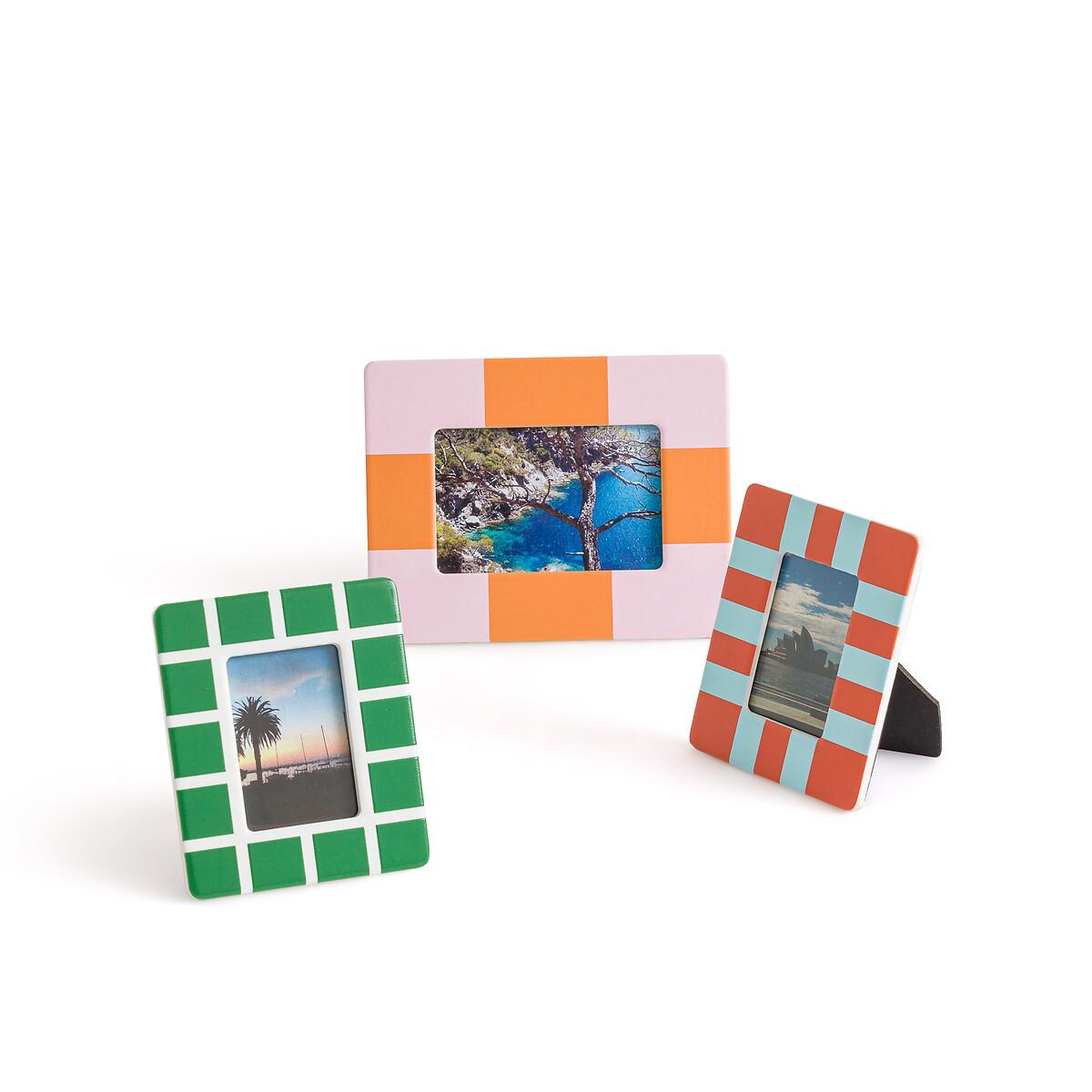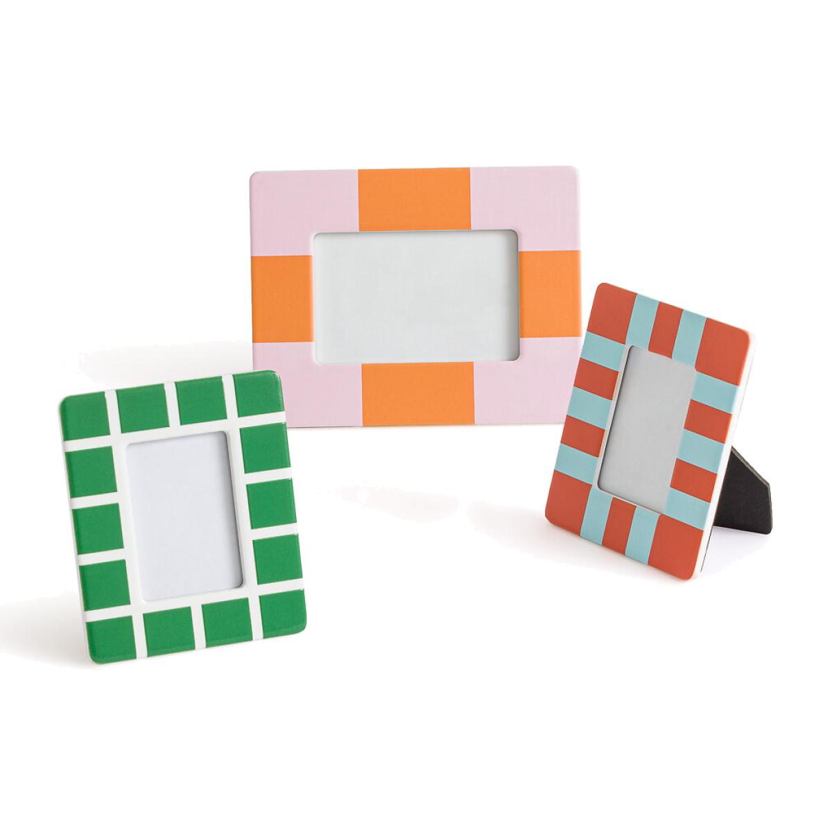 Crafted from ceramic, accented with colourful checkered designs: Calora frames are perfect for showcasing your favourite photos and personalising the decor in your interior.
