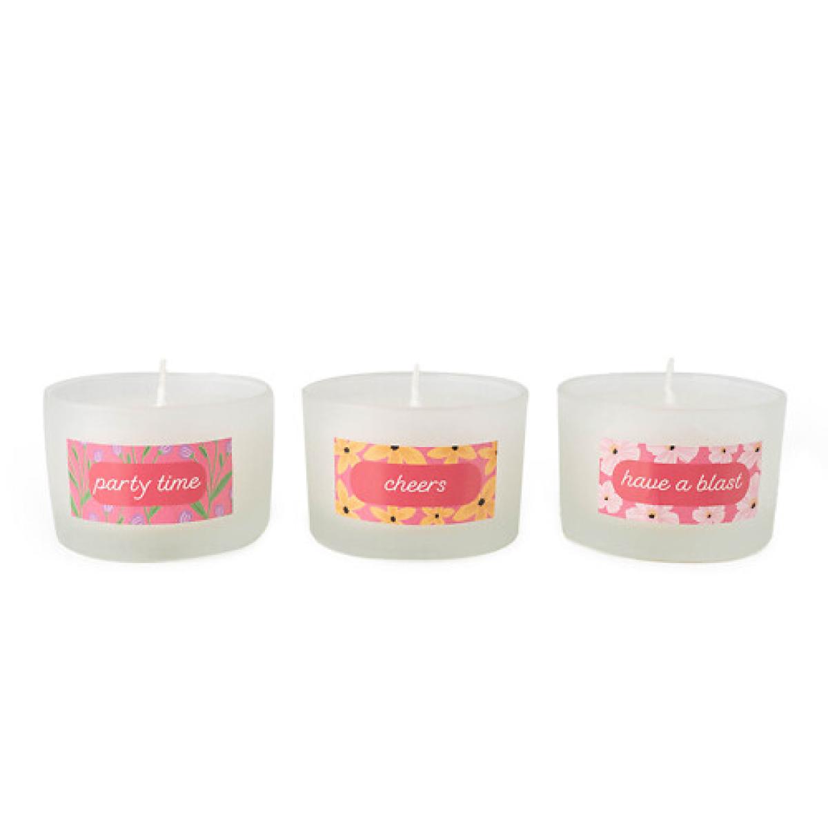 I love this set of three candles for its versatility and cheerful design, making it a great addition to both casual and more festive interiors. It works well in cosy living rooms, bathrooms, or even on a dining table for special occasions. The fun, colourful packaging adds a celebratory touch, perfect for gifting or brightening up your space. For a styled look, try placing the candles on a neutral tray or amongst some greenery or seasonal blooms to create a simple, inviting display. These candles are practical and affordable, making them a smart choice for adding a warm, inviting glow to everyday moments or special celebrations.