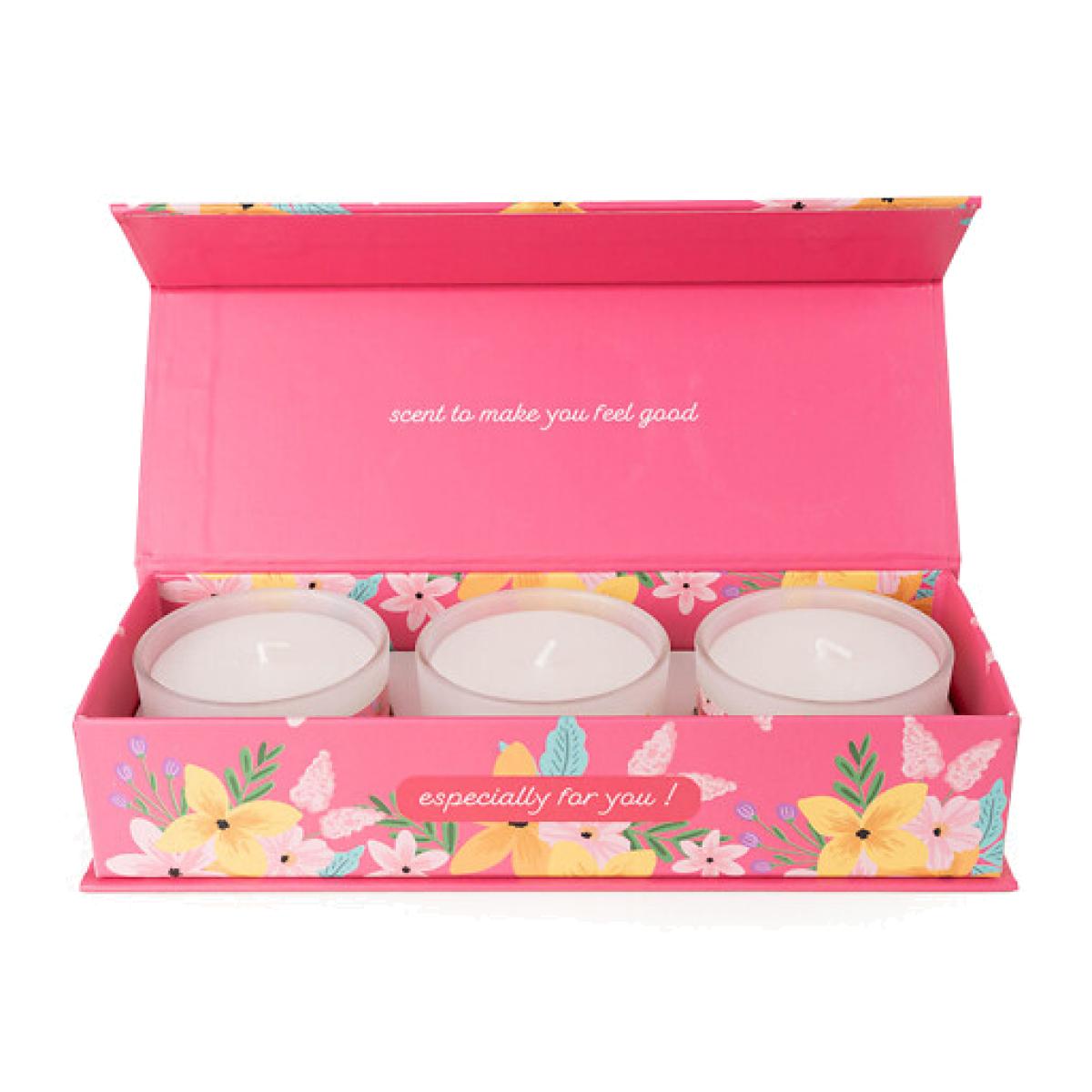 Celebrate special moments with our celebratory set of 3 Candle Gift Set in a pink floral print. This elegant set features three beautifully scented candles, each housed in a charming floral pink container. Perfect for celebrating loved ones, these candles create a warm, inviting atmosphere while adding a touch of sophistication to any space. Ideal for gifting and celebrating life's milestones. This product will be dispatched by one of our trusted suppliers. You’ll be contacted by their selected courier about your delivery.