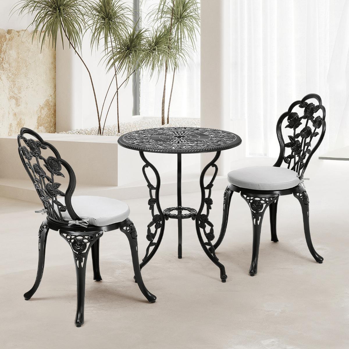 Set of 3 Cast Aluminum Bistro Set - Rose Pattern