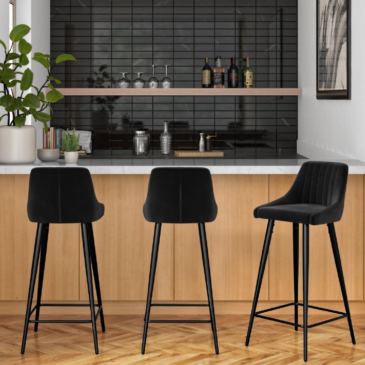 I love these bar stools for their sleek, contemporary look and the rich charcoal velvet finish, which adds a touch of sophistication to any space. They work particularly well in modern or minimalist kitchens and breakfast bars, but can also bring a luxe vibe to more eclectic interiors. Practical styling tips include pairing them with warm wood or marble worktops to balance the dark upholstery, and keeping accessories understated to let the fabric’s texture stand out. These stools are not only stylish but also comfortable with their supportive backs, making them a great choice for both casual meals and entertaining.