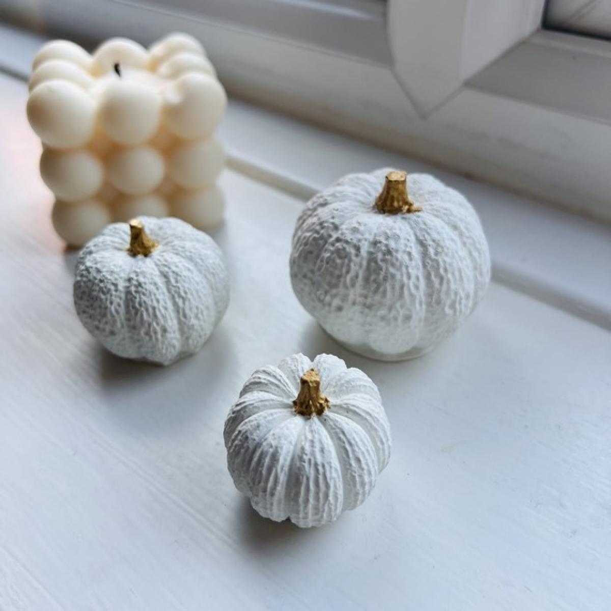 Get your Autumn decor going with the set of 3 Concrete Pumpkins. These handmade pumpkins are made with cement and the stalks are hand painted with gold paint. Measurements: Small- 3cm x 3cm Medium- 4cm x 4cm Large- 5.5cm x 5cm The picture shown is a representation of the Concrete Pumpkins you will receive. Each item is handmade and will have slight variations in aesthetic due to techniques used to create the product. Please ensure you are happy with this original process before making a purchase. Our Concrete Pumpkins are handmade. The cement is hand poured and due to this, air bubbles may be present. Colours may vary meaning if you order 2 of the same one, they may not look exactly the same. This adds to their individuality and uniqueness. These make the perfect addition to any home. They make beautiful decorative features, and their unique style adds a beautiful, modern and industrial feel to your home.