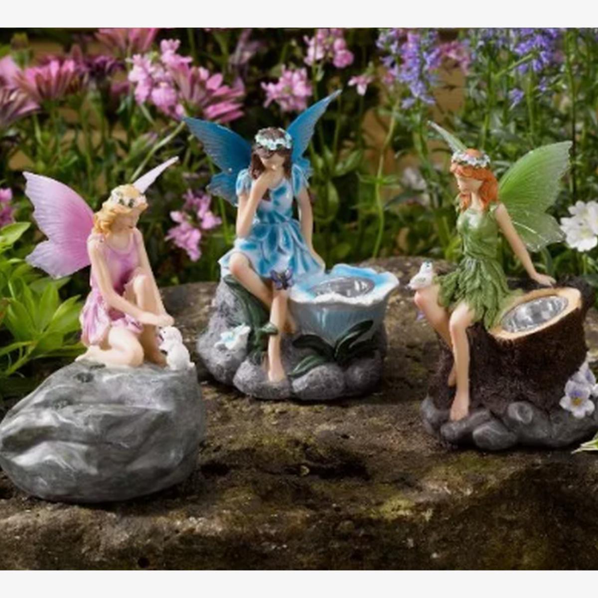 These stunning set of 3 spotlights are the prefct addition to any garden or fairy garden. Charges in direct sunlight and automatically illuminate in darkness. These little fairies can be sat next to each other or spread throughout your garden, in your flower beds, patios, decking or at your front door. Set of 3 Fairy Statue Solar Spotlights - Green,Blue,Pink,White,Brown