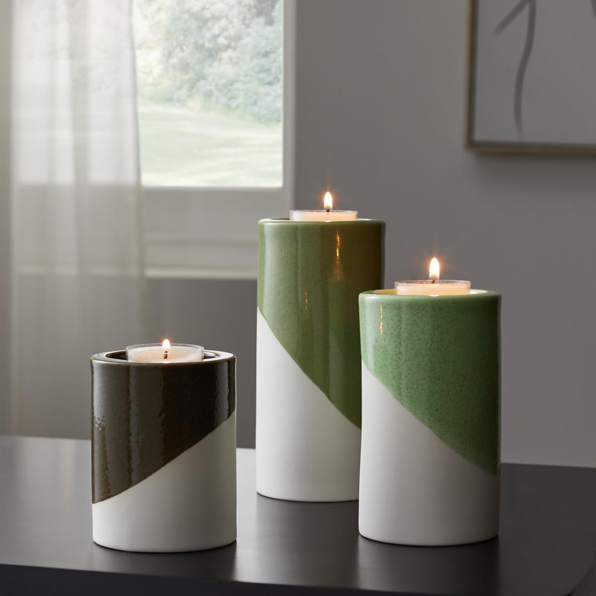 Designed with a green glaze finish, this set of 3 candle holders made from ceramic are perfect for tea light candles, adding a touch of style to any room of the house. Whether its placed alone or placed together, these candle holders will make a beautiful display in your home.