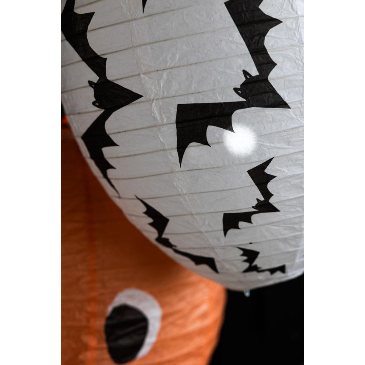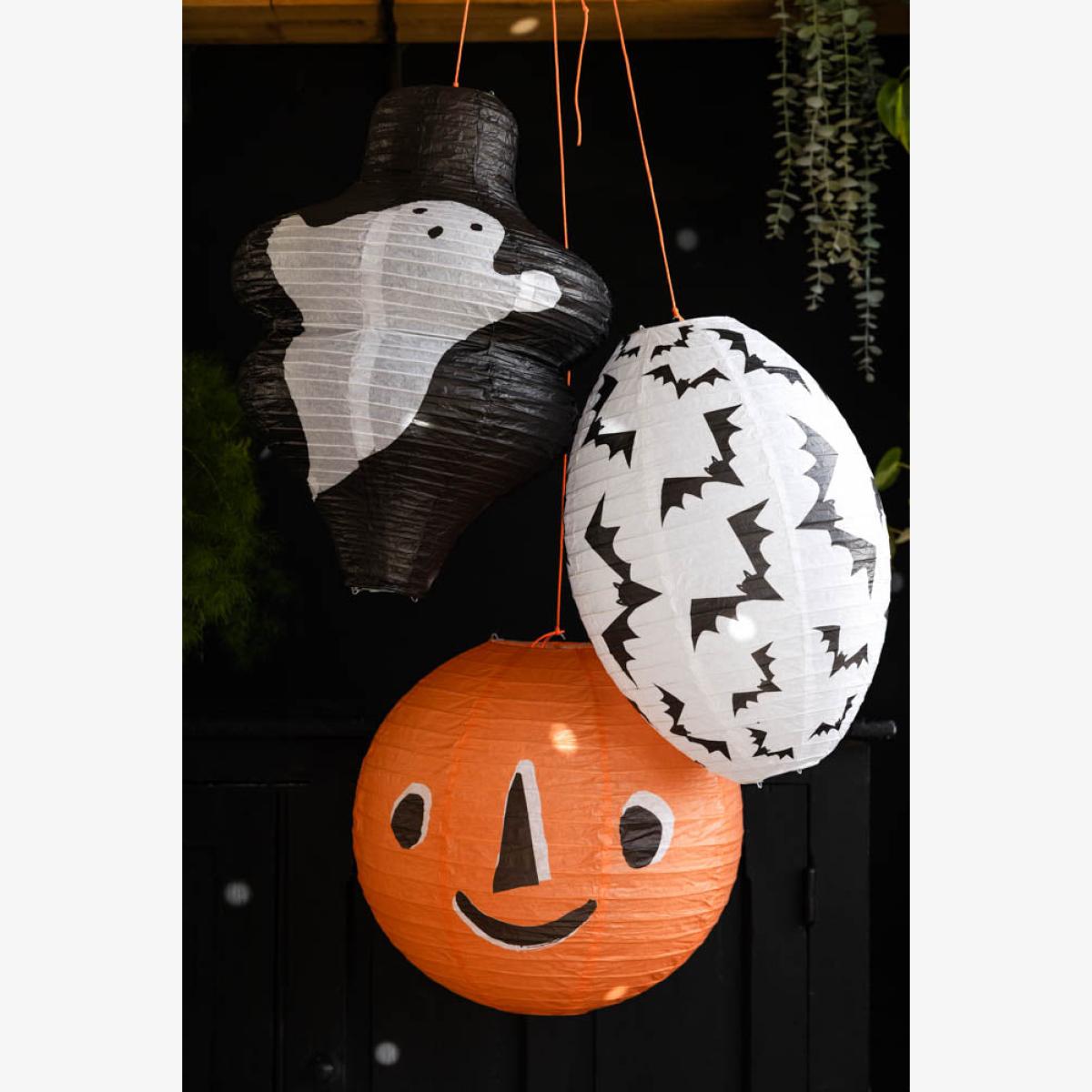 Light up your soiree with this adorable trio of Halloween lanterns. Inside the set you’ll find a jet-black lantern with a cheeky ghost silhouette peeking out, a round orange lantern with a carved-effect face that looks just like a glowing pumpkin, and a crisp white oval lantern sprinkled with little bats that flutter all over. Super chic and impossibly cute, these Halloween decorations are the perfect way to add instant magic to your Halloween party papercraft setup. Lightweight and easy to hang, they bring just the right mix of spooky and sweet – whether you’re hosting a haunted house bash, dressing up your front porch for trick-or-treaters, or simply creating a tablescape worth swooning over. - Halloween Decorative Paper Garlands - Measures:Oval lantern 45cm | Wavy lantern: 50cm | Round lantern: 40.6cm - Materials: Paper - Do not come with lights