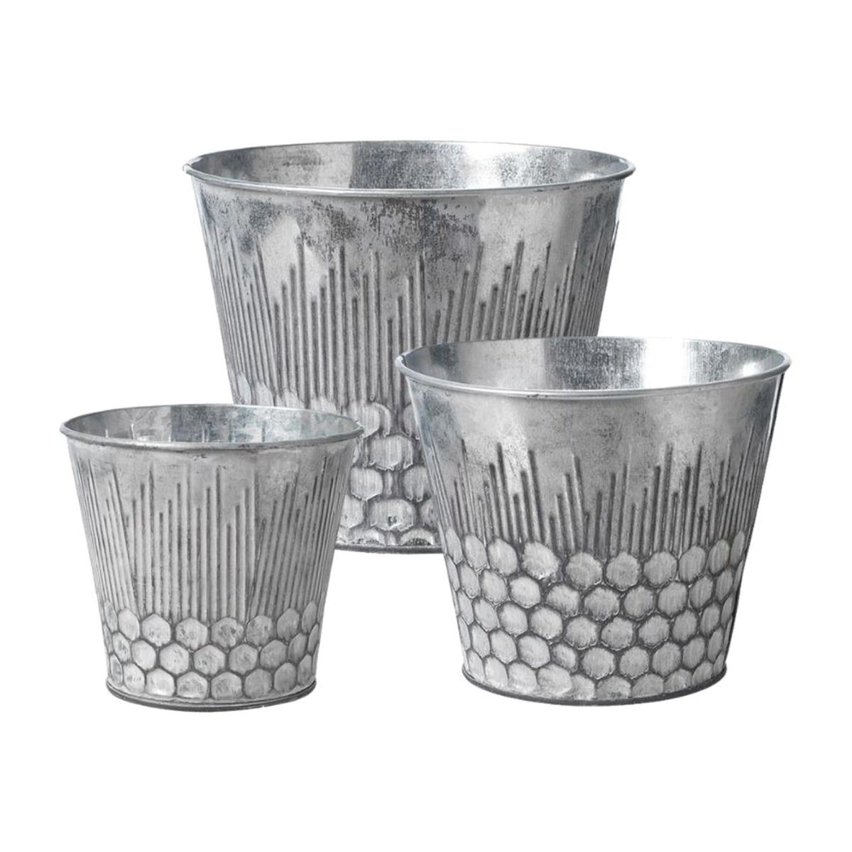 Set of 3 Indoor Zinc Honeycomb Plant Pots - Silver