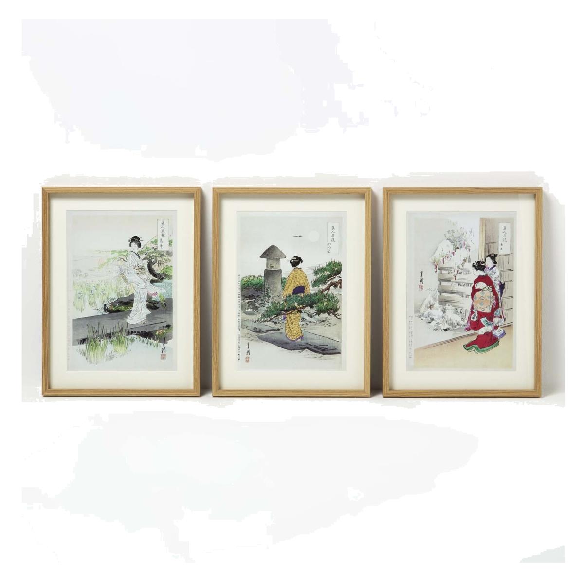 Enhance your home with Homescapes set of 3 framed wall art of geishas, a stunning tribute to traditional Japanese artistry. Inspired by the works of Ogata Gekk, a celebrated Meiji-era artist, this abstract wall art features 3 elegant geishas dressed in yellow, red, and white, each set against a beautifully detailed oriental scenic backdrop, Printed on high-quality paper and encased in MDF frames with glass fronts, these wall decor ensure clarity, durability, and timeless appeal. Each frame measures 30 x 40 cm, making them versatile for creating a stunning focal point when arranged together or displayed separately, Ideal kitchen wall decor, pictures for living room, dining areas, wall art for bedroom, office or wall art for hallway and stairs. These geisha prints bring a refined cultural elegance to any setting. Whether youre an art collector, a fan of Japanese aesthetics, or simply looking to add a unique statement piece to your home, this premium framed wall art set from Homescapes is an exquisite choice.