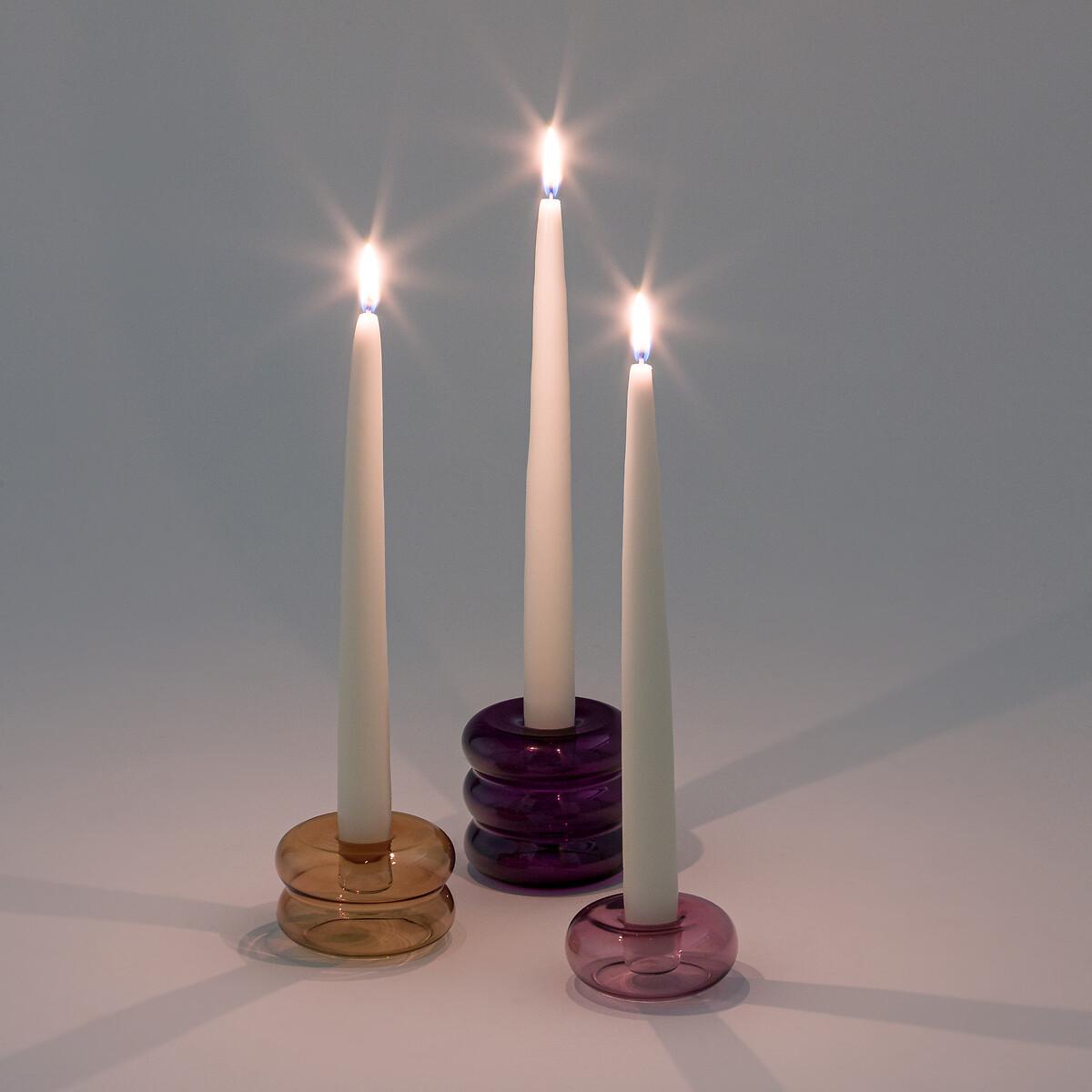 I love this set because of their vibrant colours and versatile shapes, making them perfect for adding a pop of colour to a neutral or minimalist interior. The rounded, chunky design works well in modern, contemporary spaces, or they can bring a playful touch to more eclectic or boho settings. Practical styling tips include grouping them on a mantelpiece, sideboard, or coffee table at varying heights for visual interest, or using them as centrepieces on dining or console tables. Candles inside these holders will create a warm, inviting glow, making them ideal for relaxing or festive settings. Their colourful glass also works beautifully with both metal-toned accents and natural textures like wood or linen.