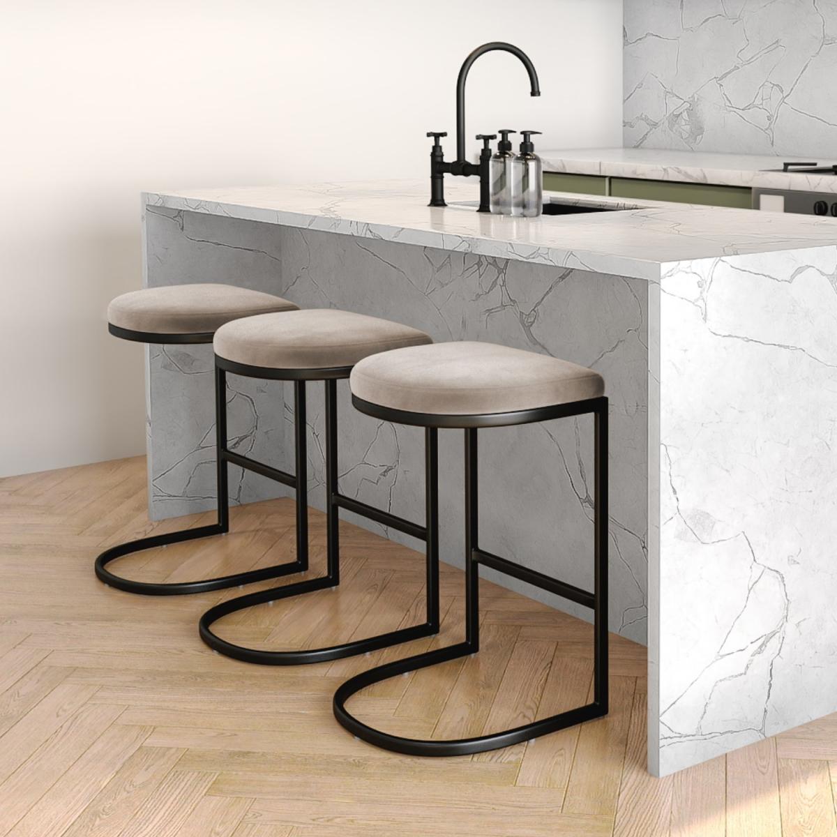 Set of 3 Mink Velvet Kitchen Stool - 66cm - Stella