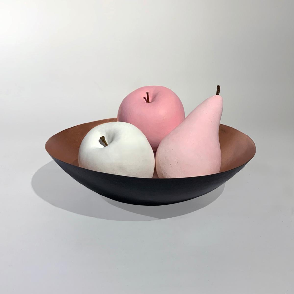 Exhibited in the London Design Fair, this Concrete Fruit Set includes two apples and a pear that are handcrafted from fine pigmented cement and topped with a natural stalk. Soothing on the touch and pleasing on the eye with its pastel colours, the Fruit Set adds a subtle touch of warmth and cosiness to the home. A mini-sculpture that is as much a decorative piece as it is a functional home accessory - perhaps a playful paperweight? This set of fruit might just help with getting your 5-a-day! Comes in a range of colour and a cork base is attached to each piece to prevent scratching. Please note that the fruit bowl is for illustrative purpose only and is not included in the set. As is the nature of hand-crafted products made from the casting process, a small seam from the original mould is visible at the back of the fruit. Slight variation on colour is expected between each batch of production.