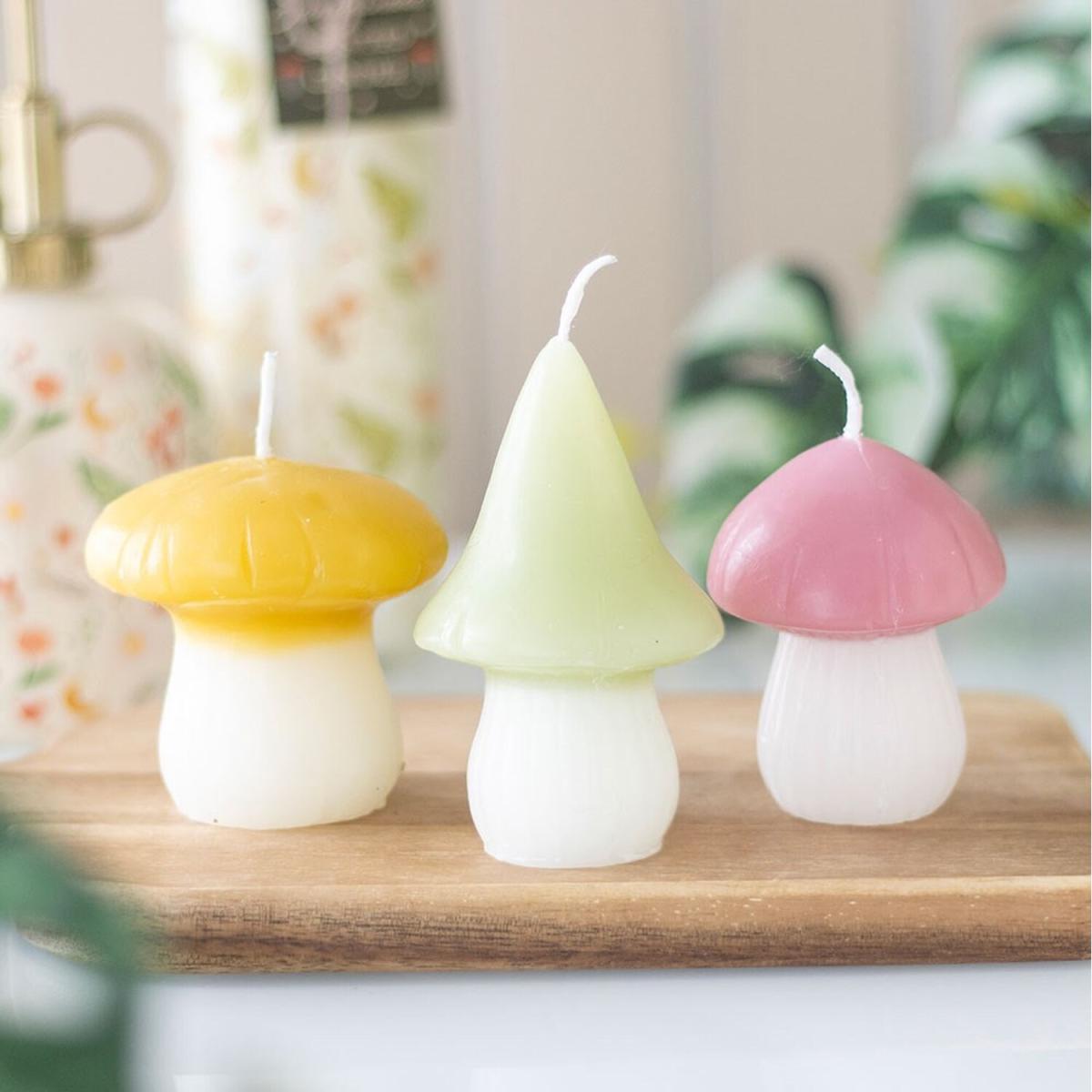 Set of 3 Pastel Mushroom Decorative Candles - Unscented