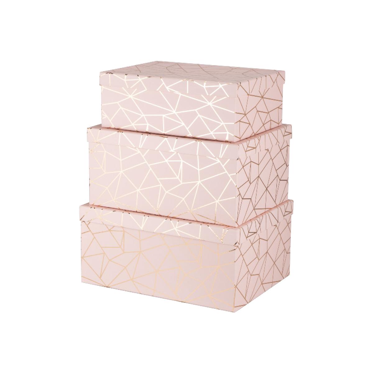 Set of 3 Pink Geometric Storage Boxes - Pink