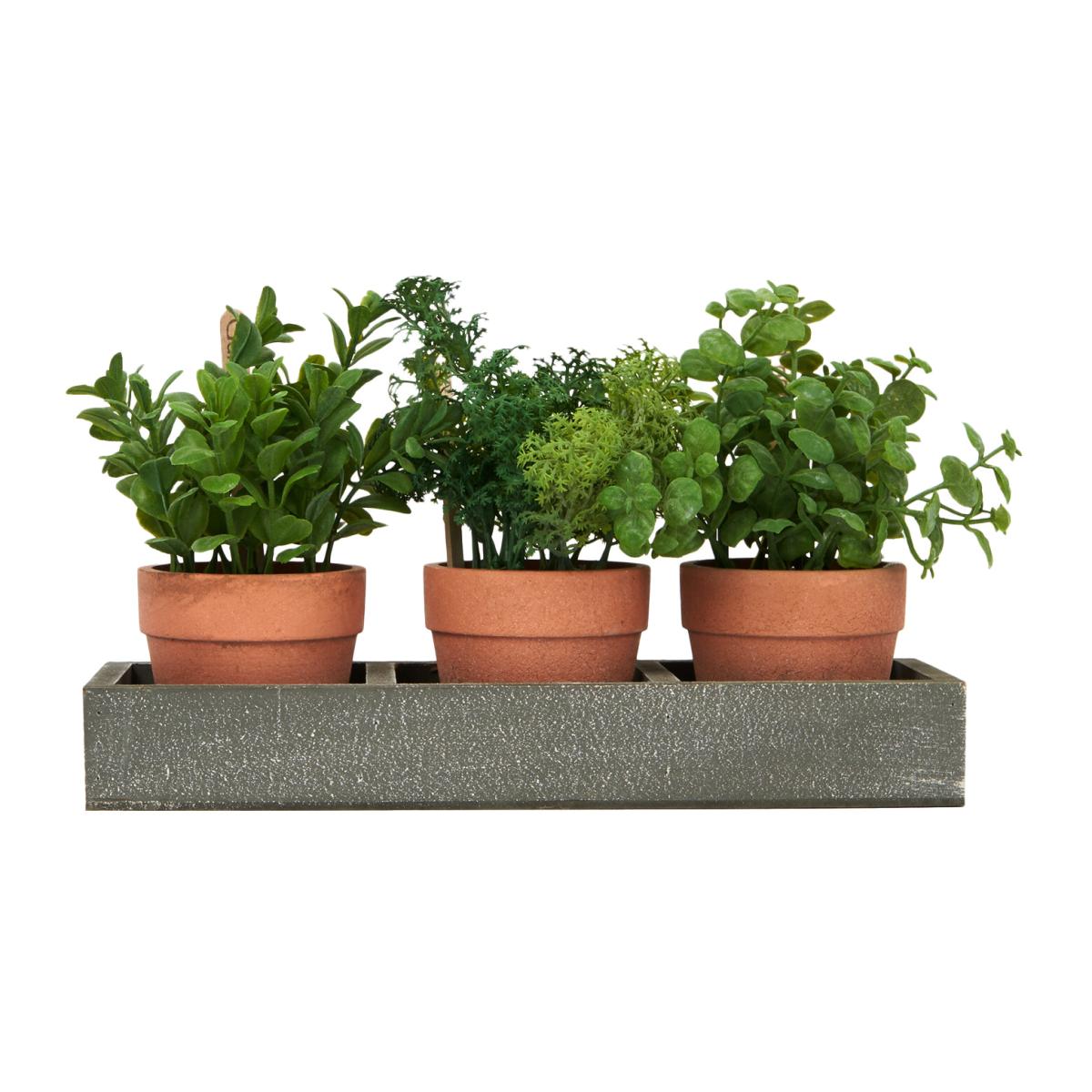 This Set of 3 Potted Herbs in Tray is the perfect addition to any home and is ideal for people who want to add plants without the faff of all the upkeep needed. Inspired by common herbs, this collection has highly detailed leaves and comes in an easy-to-coordinate grey speckle tray. It will look gorgeous and vibrant sitting on accent tables, shelves, and mantelpieces.