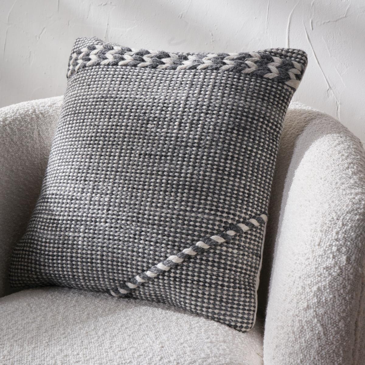 Set of 3 Sage and White Plait Square Scatter Cushions Grey