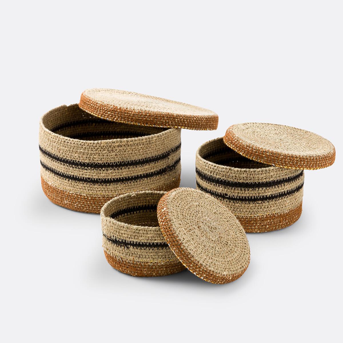 Set of 3 Saski Seagrass Baskets with Lids