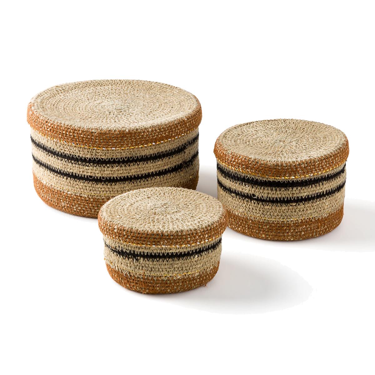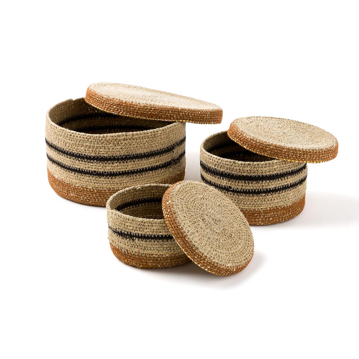 These 3 Saski baskets combine craftsmanship and functionality. Their small size allows them to be used as tiny storage pots - to hold small objects, keys or jewellery - or to display them on a decorative shelf..