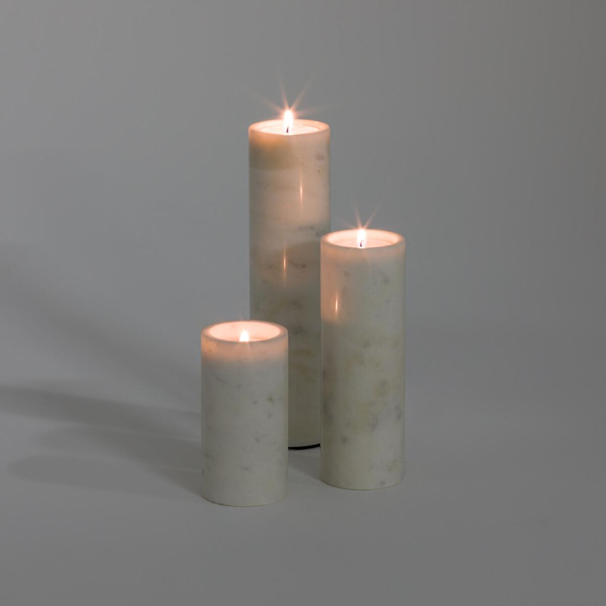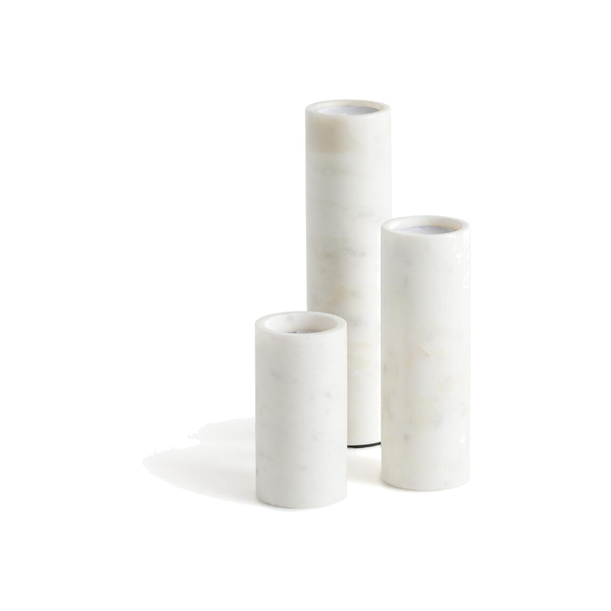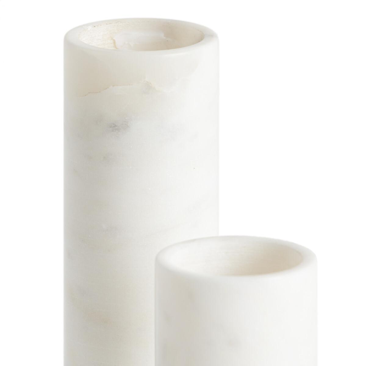 With a contemporary look and refined design, the Scafi candle holders are made from white marble with light veining.. On a coffee table, a console, these candle holders will complete a chic and elegant decoration.