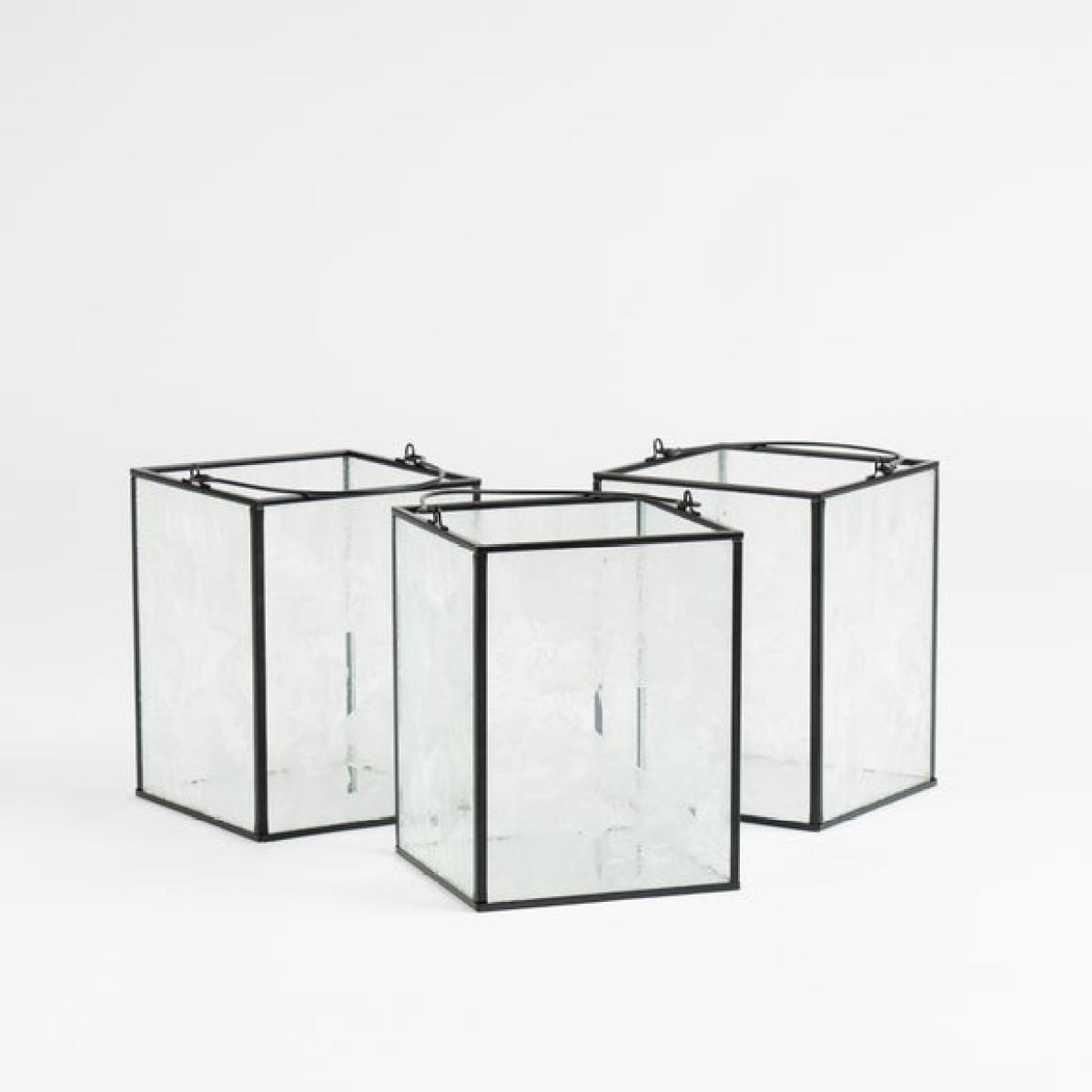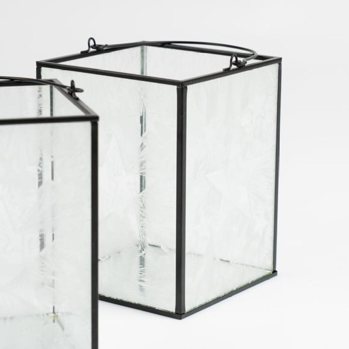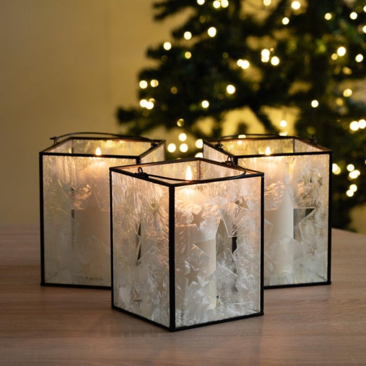 * Set of 3 glass lanterns * Etched star patterns * High-quality glass * Black metallic accents Create a warm glow with this set of three glass lantern candle holders. Each piece features etched star patterns that shimmer gently in candlelight. Made from high-quality glass, they’re ideal for grouping together or displaying separately across your home. Whether on a mantel, shelf or dining table, they add a festive touch with understated elegance. Recommended for indoor use only.