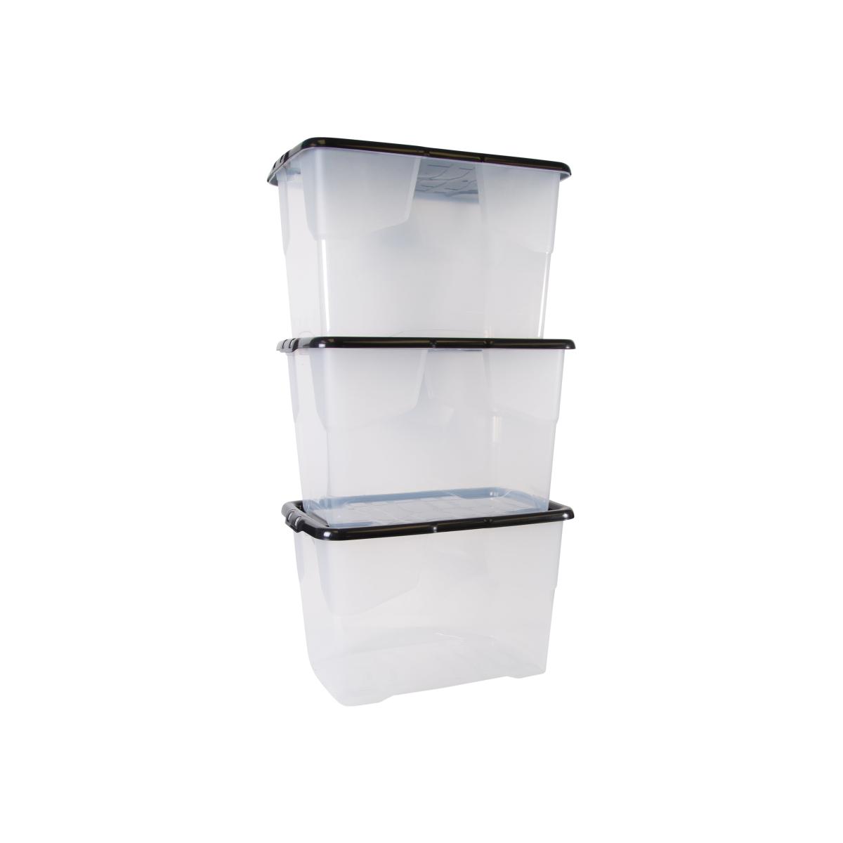 Set of 3 Strata 65L Curve Storage Box with Lids Clear