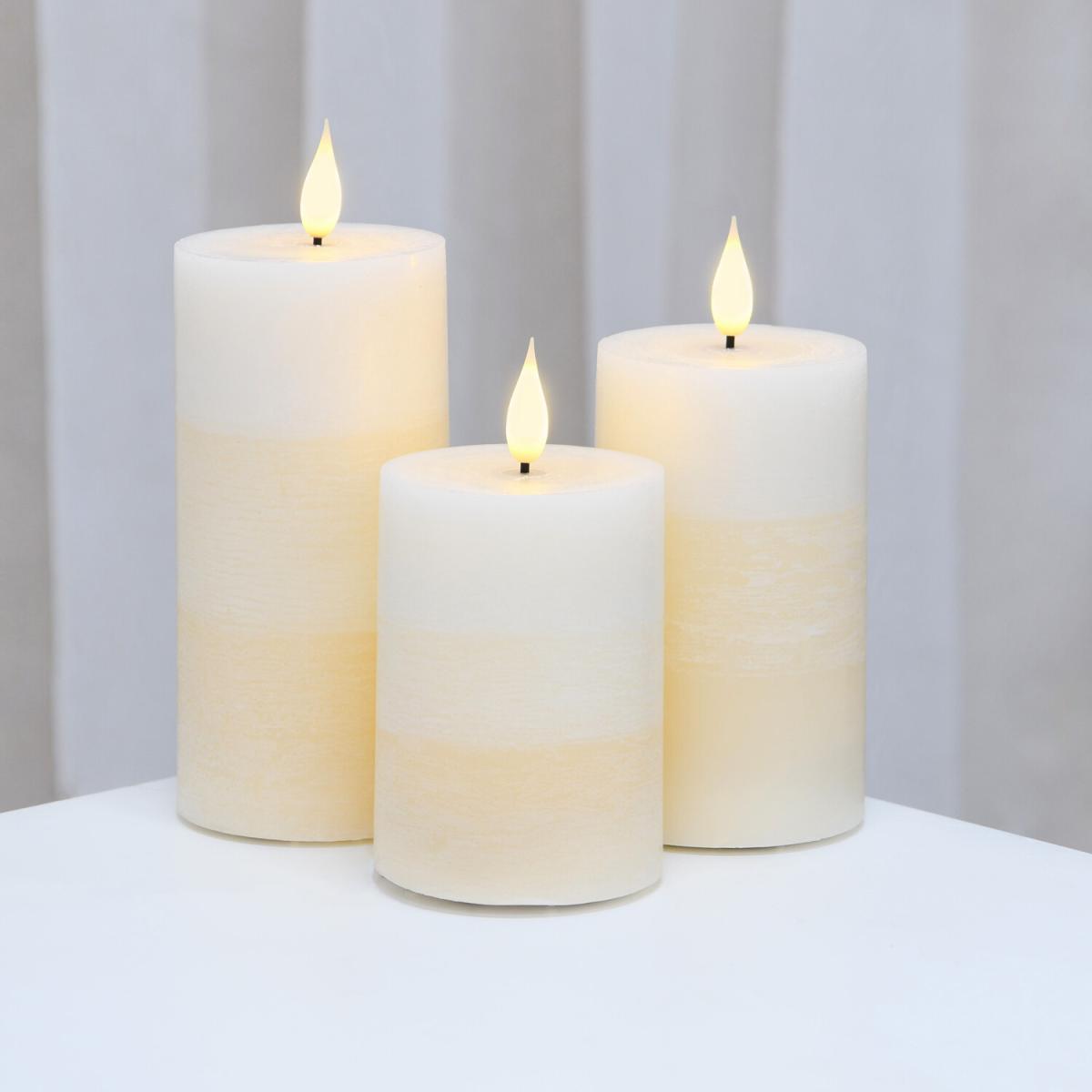 Set of 3 Vanilla Oatmeal Scented Ombre LED Candles - Cream and White