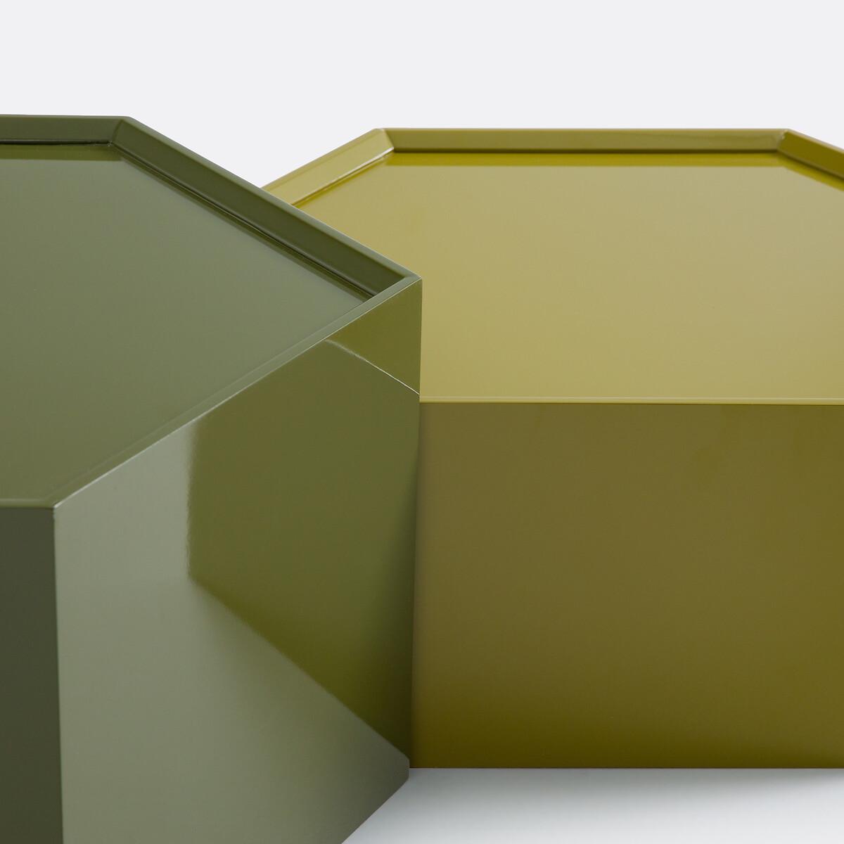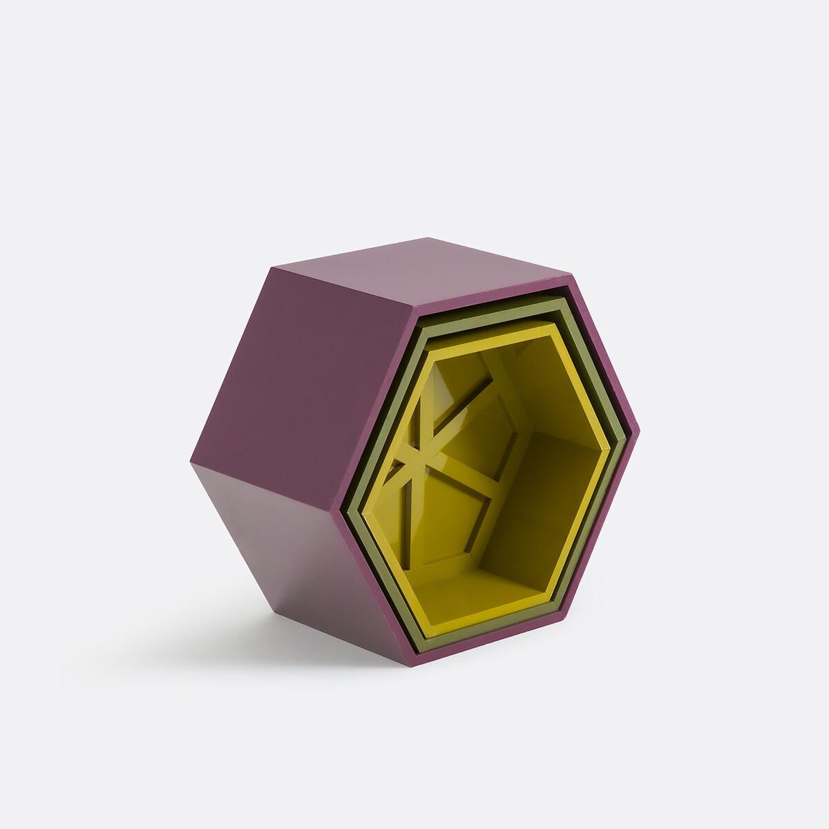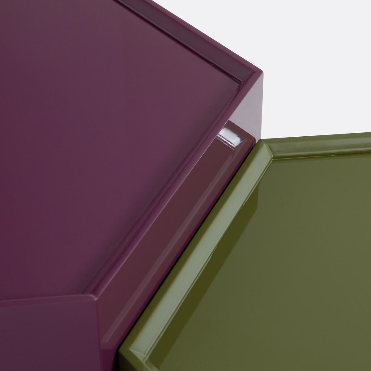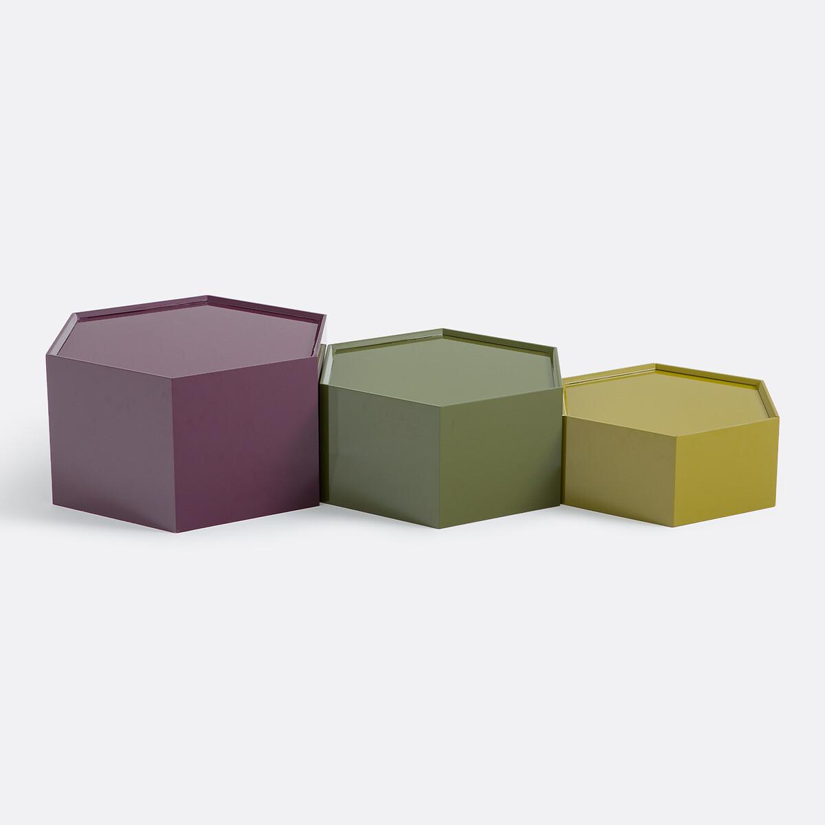 Interplay of heights. Mix of colours. Introducing Wai, the 3 coffee tables in the same hexagonal shape, full of modernity. They sparkle with lacquered wood and practicality. To be arranged scattered, grouped or stacked in the living room. A product designed by our La Redoute Intérieurs designers. Product Details • MDF and melamine, gloss polyurethane lacquer finish • Hexagonal shape • 3 different heights and 3 different colours. Care advice • To protect your coffee tables, consider trivets, coasters and placemats. Dimensions Model 1 • Length: 60cm • Height: 35cm • Depth: 60cm • Weight: 13kg Model 2 • Length: 54cm • Height: 28cm • Depth: 54cm • Weight: 10kg Model 3 • Length: 48cm • Height: 21cm • Depth: 48cm • Weight: 7kg • Sold pre-assembled. • WOOD FROM SUSTAINABLY MANAGED FORESTS. FSC® certified wood comes from forests that are environmentally, socially and economically well managed. Dimensions and weight of parcel1 parcel • W71 x H36 x D62cm, 34.1kg