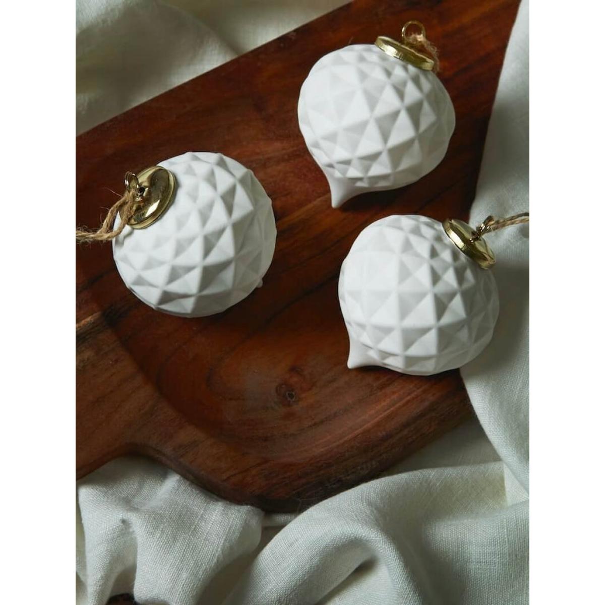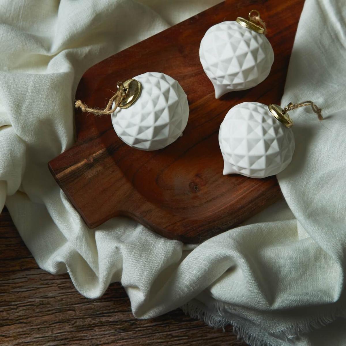 A stunning set of 3 tree decorations with an onion design made from matt white ceramic. A wonderful way to add a Scandinavian style to your tree.