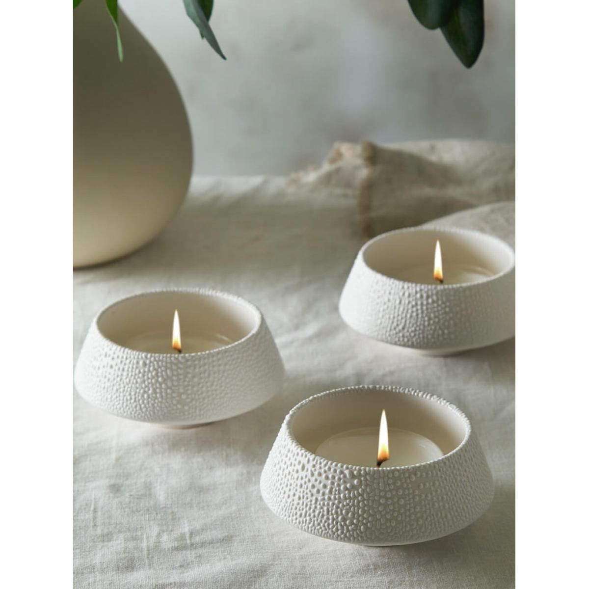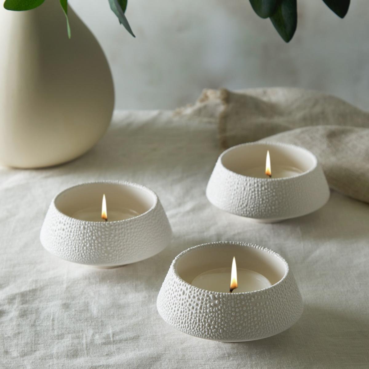 I love these white ceramic tealights because of their simple yet textured design, adding subtle visual interest without overpowering a space. They’re versatile and work well in a range of interiors, from minimalist and Scandinavian settings to cosy, boho-style rooms. Practical styling tips include grouping them on a neutral tray to create a calm centrepiece, or placing them in a layered vignette alongside natural elements like dried flowers or ceramics for a curated feel. They're perfect for creating warm ambient lighting and can be easily integrated into table settings, shelves, or bedside tables.
