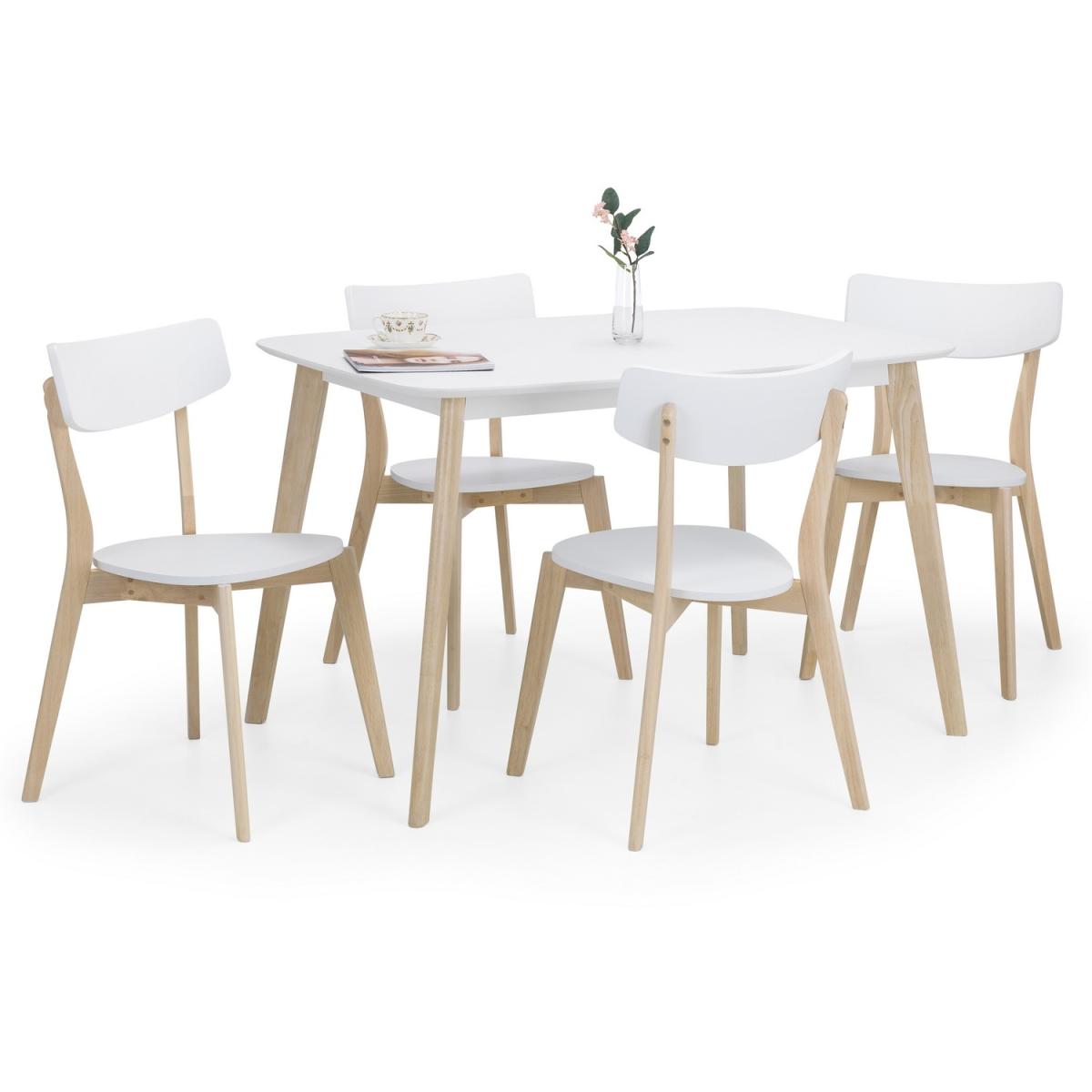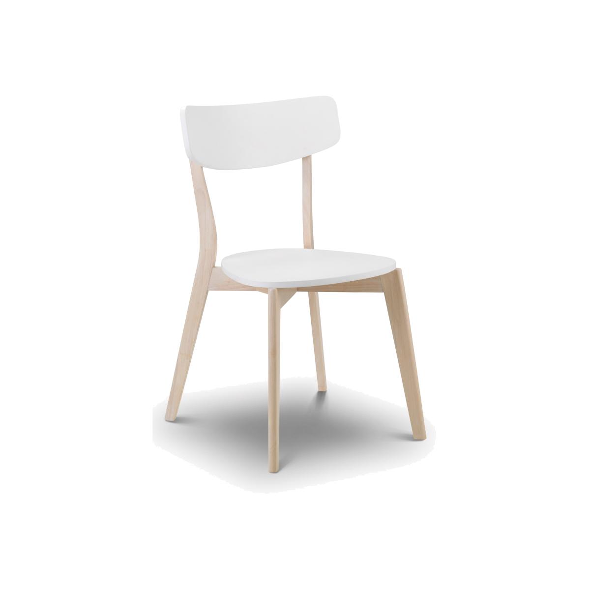 A timeless retro design reflecting the style of the 1950s. The Casa Dining Chair has white lacquered seat and back panels with limed oak effect legs. Crafted from solid Malaysian hardwood and MDF ensuring long-lasting durability.