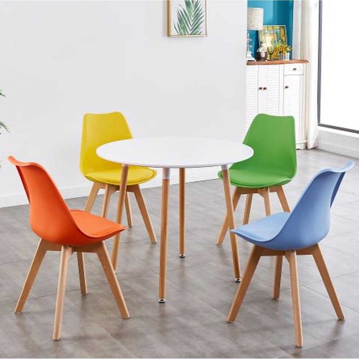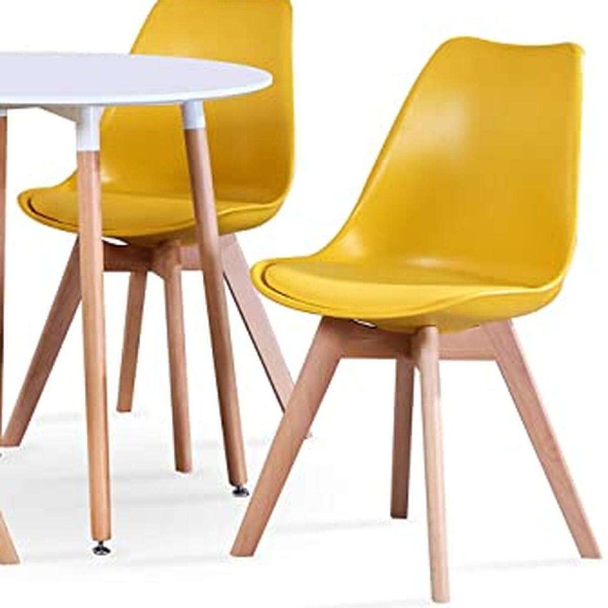 Transform your dining room or kitchen with these stunning and sophisticated chairs. A great addition to your dining room or kitchen that is both modern and eye-catching. The chairs are of a classic design, the plastic curved so sophisticatedly and it has a cushioned seat for that extra comfort. Polypropylene matte finish for the table and rubber pads under the feet protect your floor from scratches, Easy to clean so a great addition to your busy home.