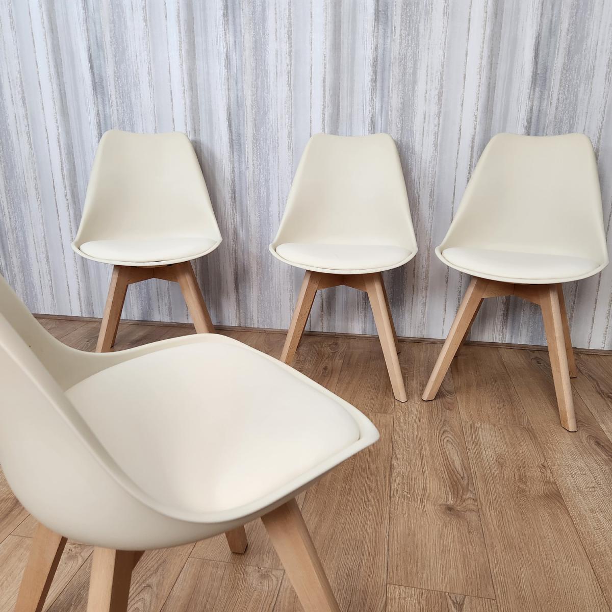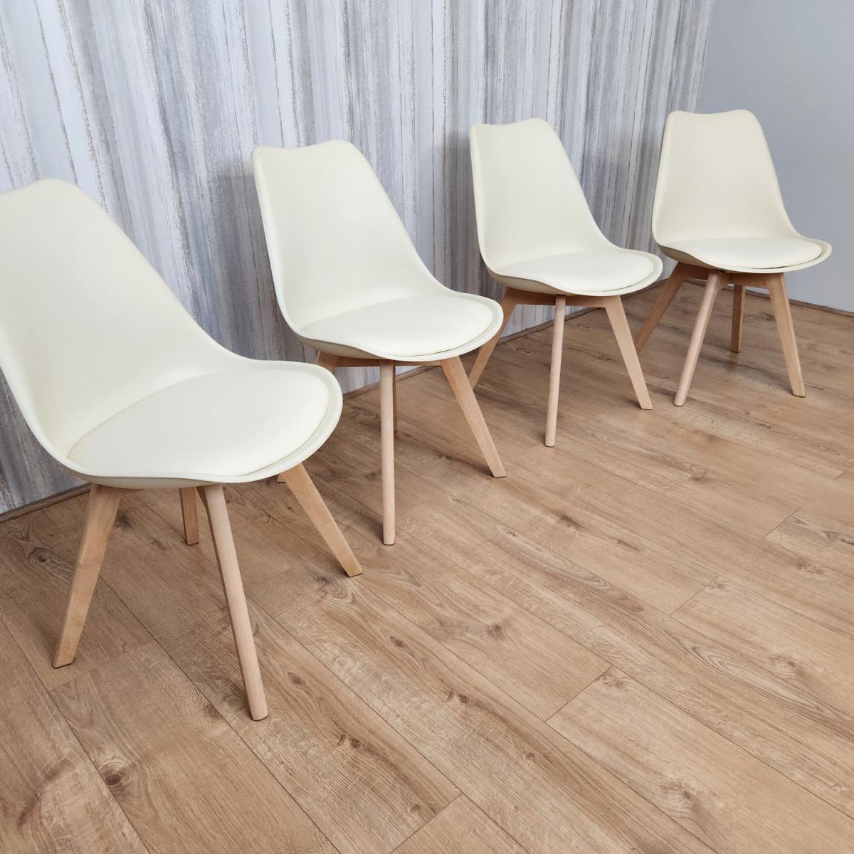 Set of 4 Cream Stylish Looking, Durable Cushioned chairs, Strong & Shock Resistant. The chairs come with faux leather cushion seat, extra comfort and very easy to clean. Pack of 4 chairs is widely compatible with other furniture and the home decoration style. These dining chairs perfectly blend in the bedroom, living room, kitchen, sitting room, porch, balcony, yard, office, etc. The chairs are particularly designed in armless style, which makes you comfortably sitting without limits. To improve the comfort, the backrest is designed in a curved shape to better fit in your body. 12 months warranty, will replace any damaged or faulty parts during your use for the table, all tools, fittings and instruction sheet are included. Chair sizes: L52 x W48 x H82 cm, Seat height: 48 cm.