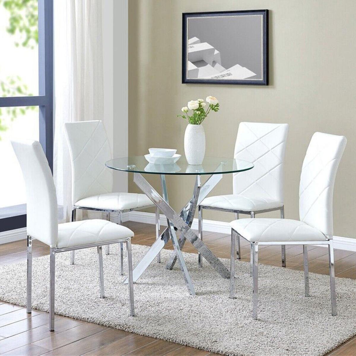 Set of 4 Faux Leather Ergonomically Designed Dining Chairs - White