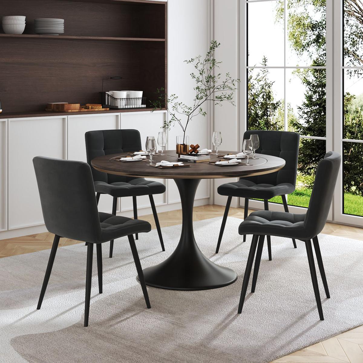 Enhance your dining area with this modern chair set of four. Upholstered in soft velvet for a luxurious touch, each chair offers both comfort and style. The black metal legs provide stability and elevate the sleek, contemporary look-ideal for everyday meals or entertaining guests.