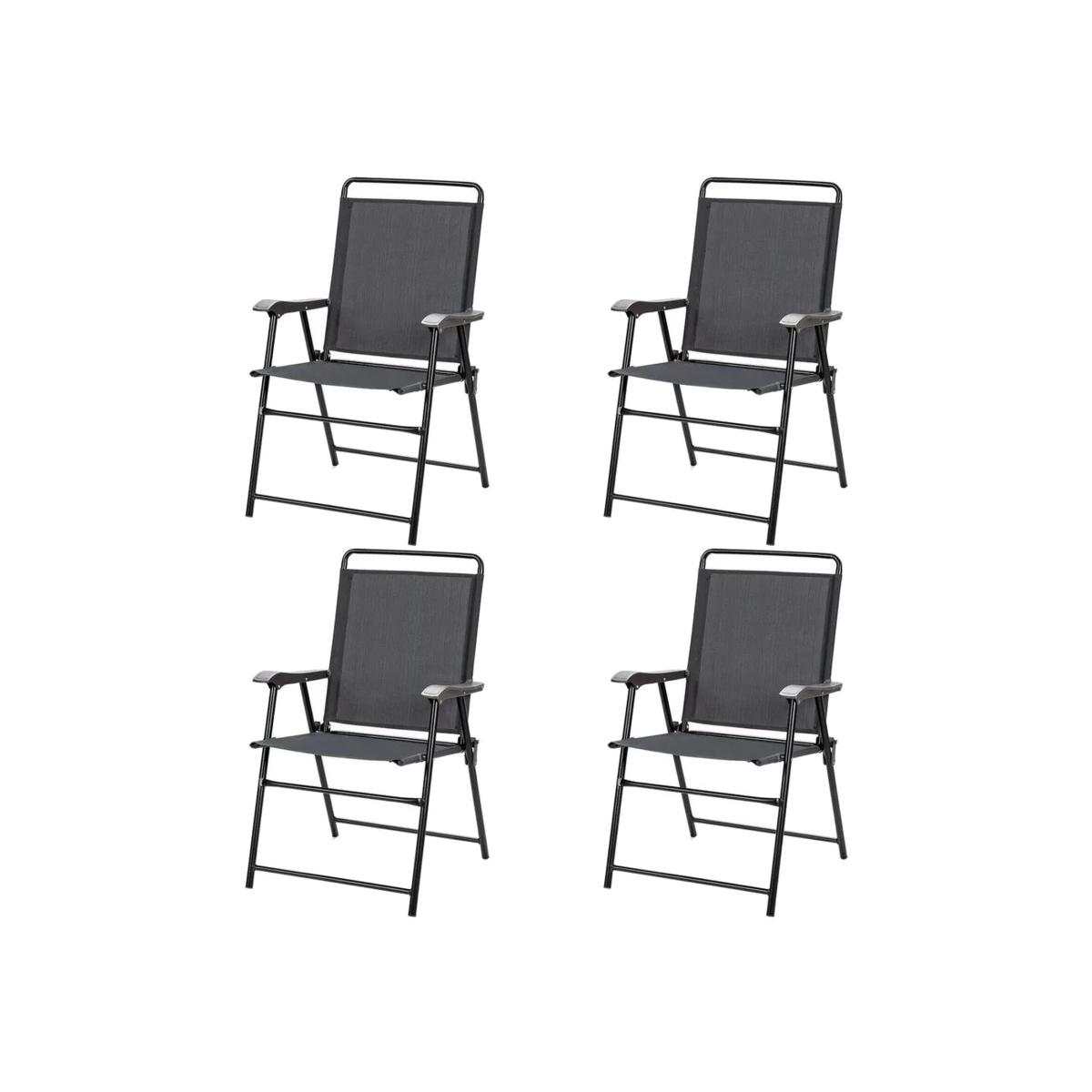 Set of 4 Garden Folding Chairs - Grey and Black