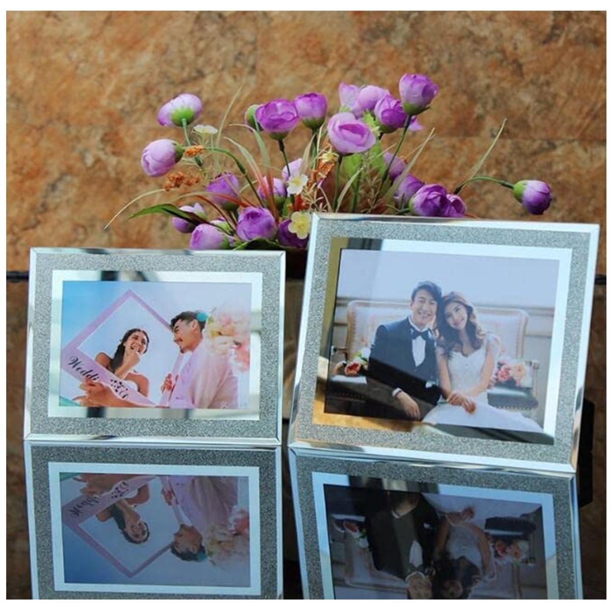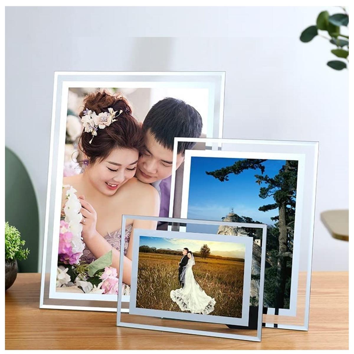 This package comes with 4 sets of Clear Glass picture frames, the quantity is sufficient for you to decorate your bedroom, office, countertop. You can also share them with your family or friends. The Mirror Glass picture frame set is made of Clear glass material, the surface is smooth and delicate. Mirrored glass can protect your photos from dust and tearing, easy to clean. The elegant photo frames are designed, will shine brightly in the lamplight, your photo frames will become elegant and romantic and will become more charming and eye catching. The glass photo frames are easy to use, you just need to put the photo into the glass frames, they can display horizontally or vertically but only for tabletop or desktop.