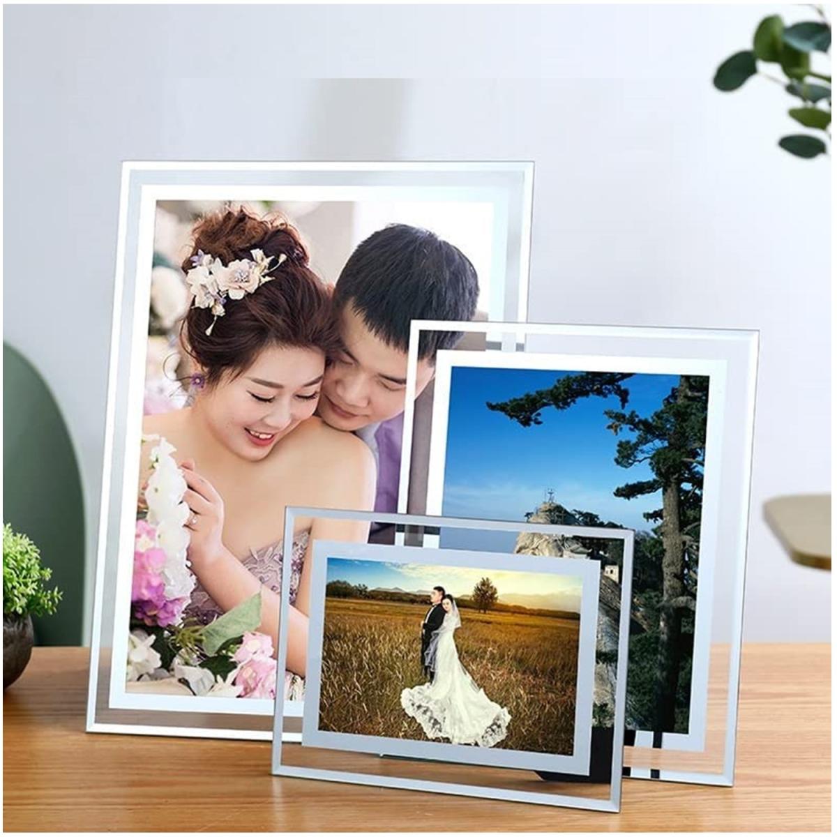 This package comes with 4 sets of Clear Glass picture frames, the quantity is sufficient for you to decorate your bedroom, office, or countertop. You can also share them with your family or friends. The Mirror Glass picture frame set is made of Clear glass material, the surface is smooth and delicate. Mirrored glass can protect your photos from dust and tearing, easy to clean. The elegant photo frames are designed, will shine brightly in the lamplight, your photo frames will become elegant and romantic and will become more charming and eye-catching. The glass photo frames are easy to use, you just need to put the photo into the glass frames, they can display horizontally or vertically but only for tabletop or desktops.