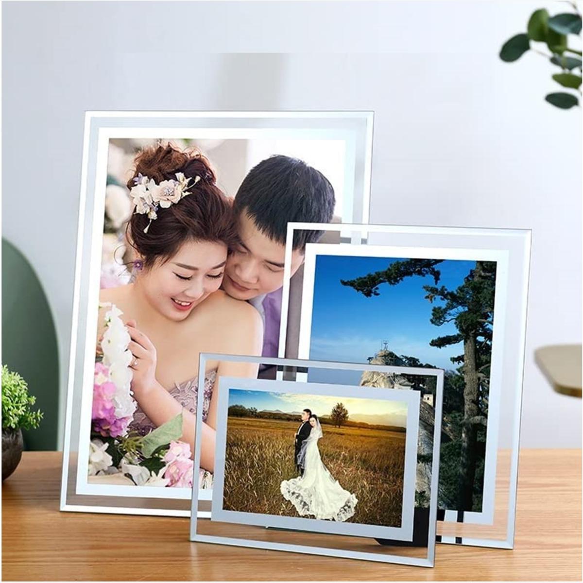 This package comes with 4 sets of Clear Glass picture frames, the quantity is sufficient for you to decorate your bedroom, office or countertop. You can also share them with your family or friends. The Mirror Glass picture frame set is made of Clear glass material, the surface is smooth and delicate. Mirrored glass can protect your photos from dust and tearing, easy to clean. The elegant photo frames are designed, will shine brightly in the lamplight, your photo frames will become elegant and romantic and will become more charming and eye-catching. The glass photo frames are easy to use, you just need to put the photo into the glass frames, they can display horizontally or vertically but only for tabletop or desktops.