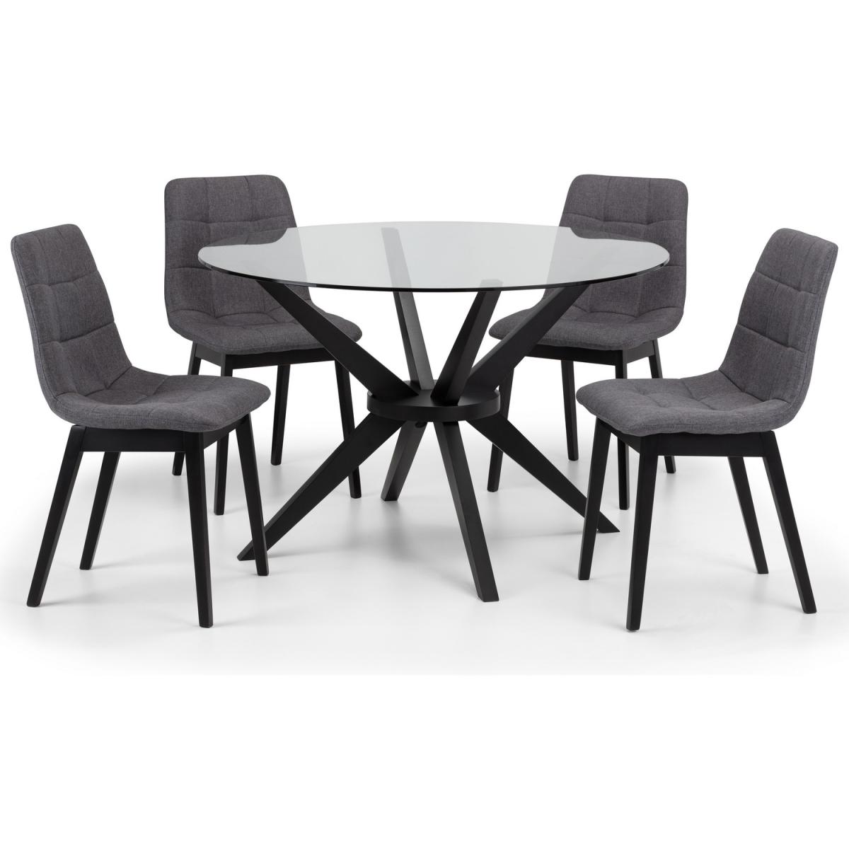 Hayden Dining Chair is crafted with classic grey linen and black lacquered Beech legs. The panelling detail provides a simple, yet smart aesthetic guaranteed to look sleek for years to come. Paired with the Hayden Glass Table, this set will create a modern look in your dining area.