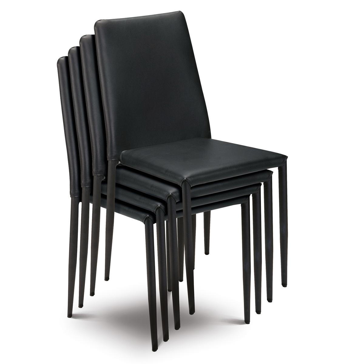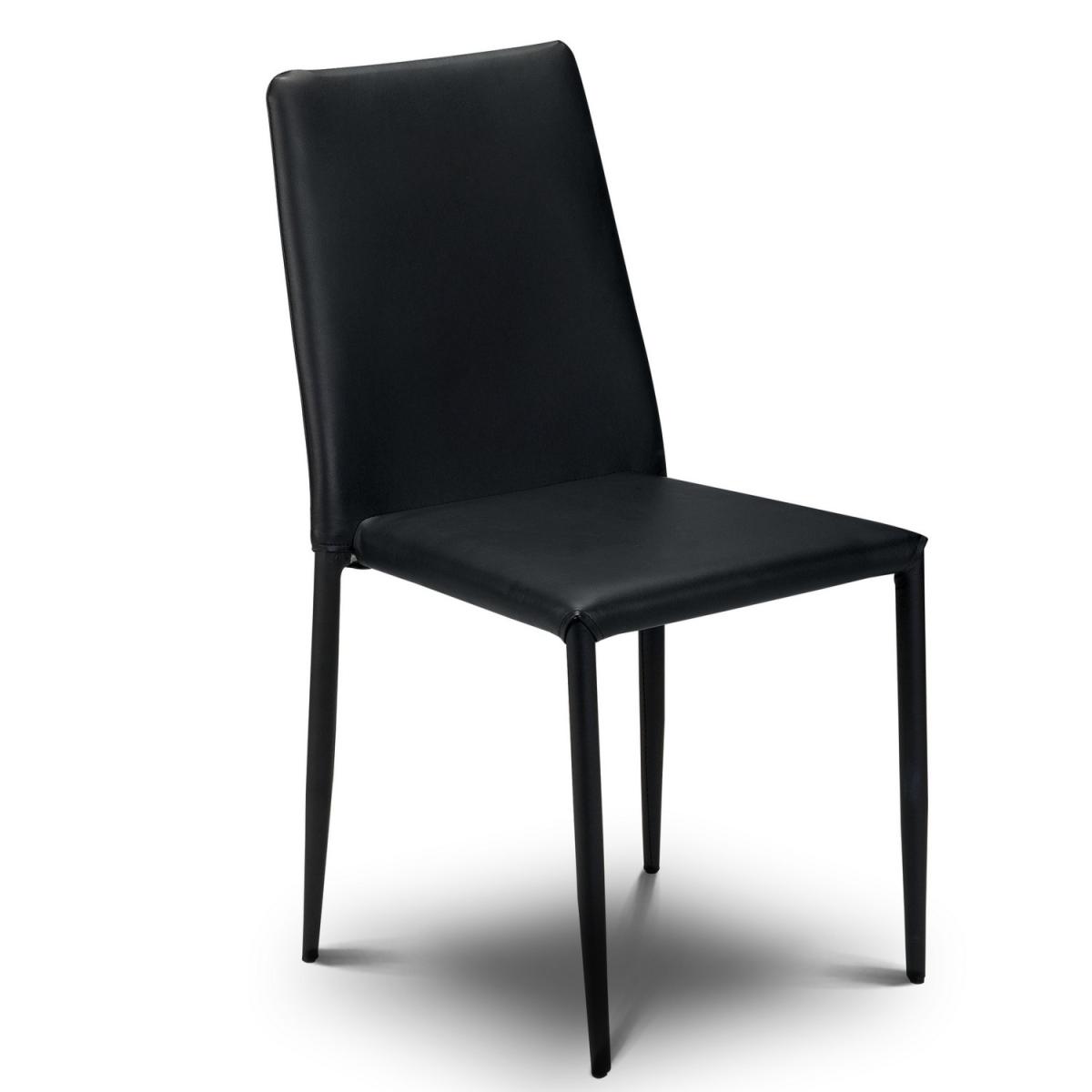 Rest with ease on the Set Of 4 Julian Bowen Jazz Stackable Chairs. Perfect to use as additional seating when guests visit, these chairs will brighten up the atmosphere with their vibrant colours. You can easily stack the chairs when they are not needed, saving room for those with limited storage space. They are easy to clean with a damp cloth, so you don't need to worry about any spilt drinks. The durable legs are fabric covered to add to their simple style, with faux leather upholstery to complement any design around your home.
