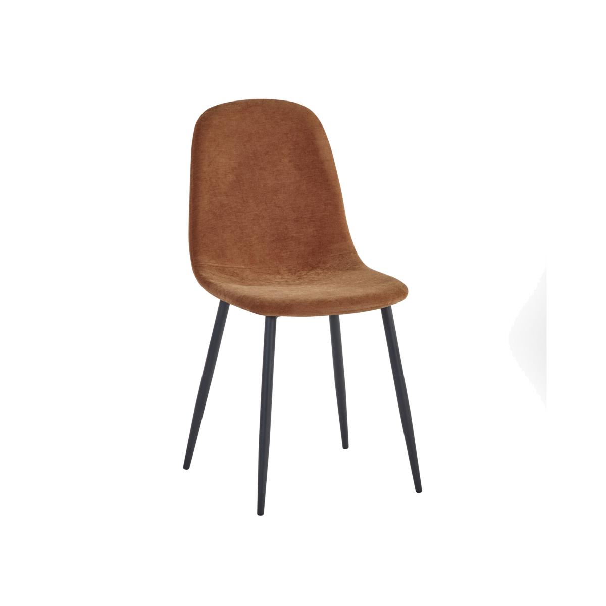 Bring warmth and personality to your dining space with this set of four dining chairs in a beautiful deep terracotta orange chenille. The plush, textured fabric and gently curved seat design create an inviting, modern look that feels effortlessly stylish. Finished with sleek black legs for a touch of contrast, this set adds a vibrant yet elegant statement to any dining room. Minimal assembly required. Table sold separately.