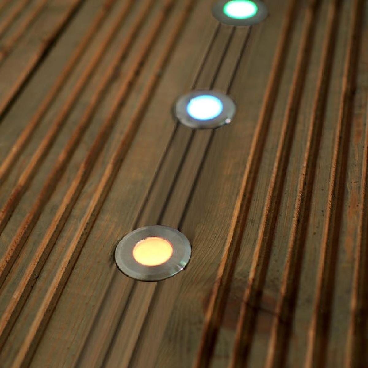 * Set of 4 * Modern, Simple Design * Solar Powered LEDs * IP65 Rated - Outdoor Suitable Brighten your deck with the Set of 4 Luna Colour Changing LED Outdoor Solar Lights. Featuring red, green, blue, and cool white options, these solar-powered LEDs come with an infrared remote and IP65 rating — perfect for vibrant outdoor ambience.