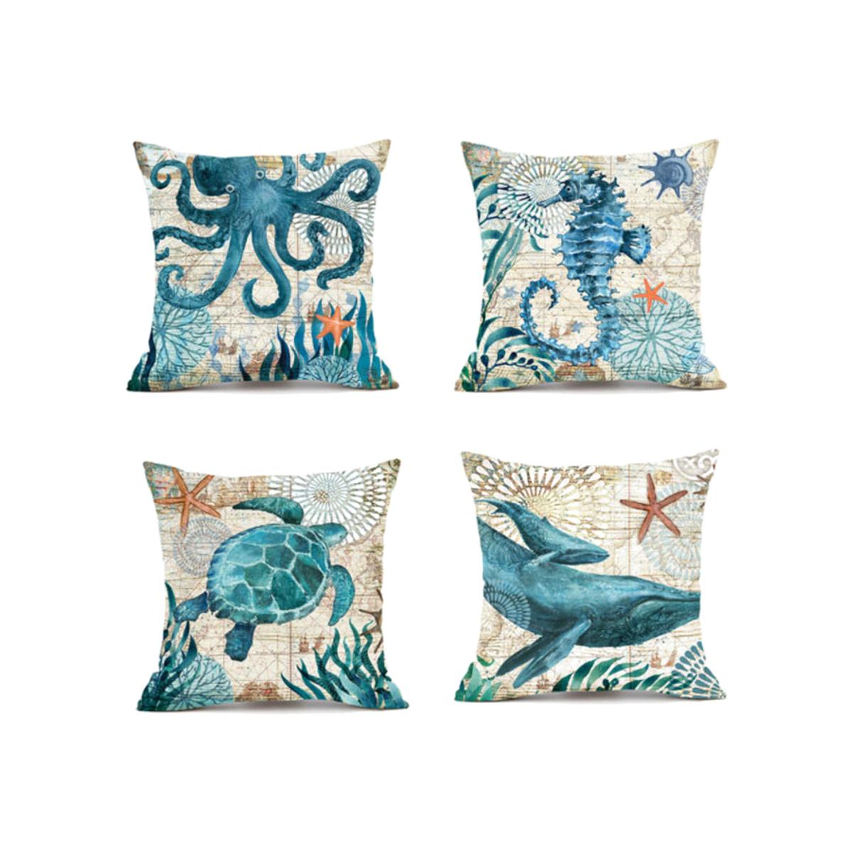 Set of 4 Marine Life Cushion Covers - Blue