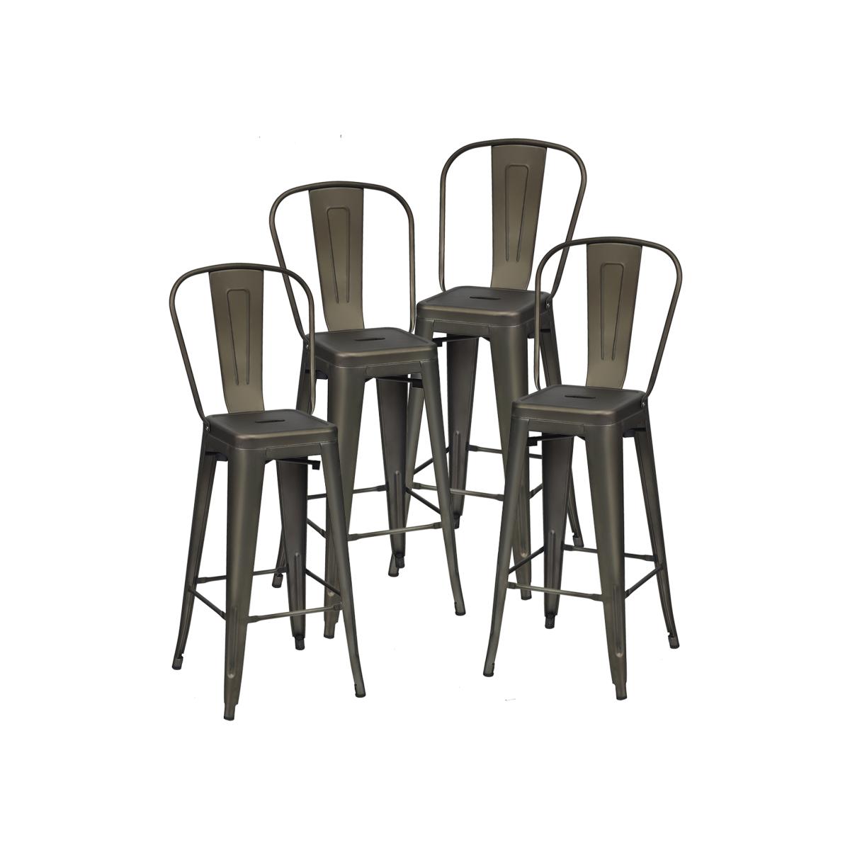 Set of 4 Metal Bar Stools with Removable Back - Brown