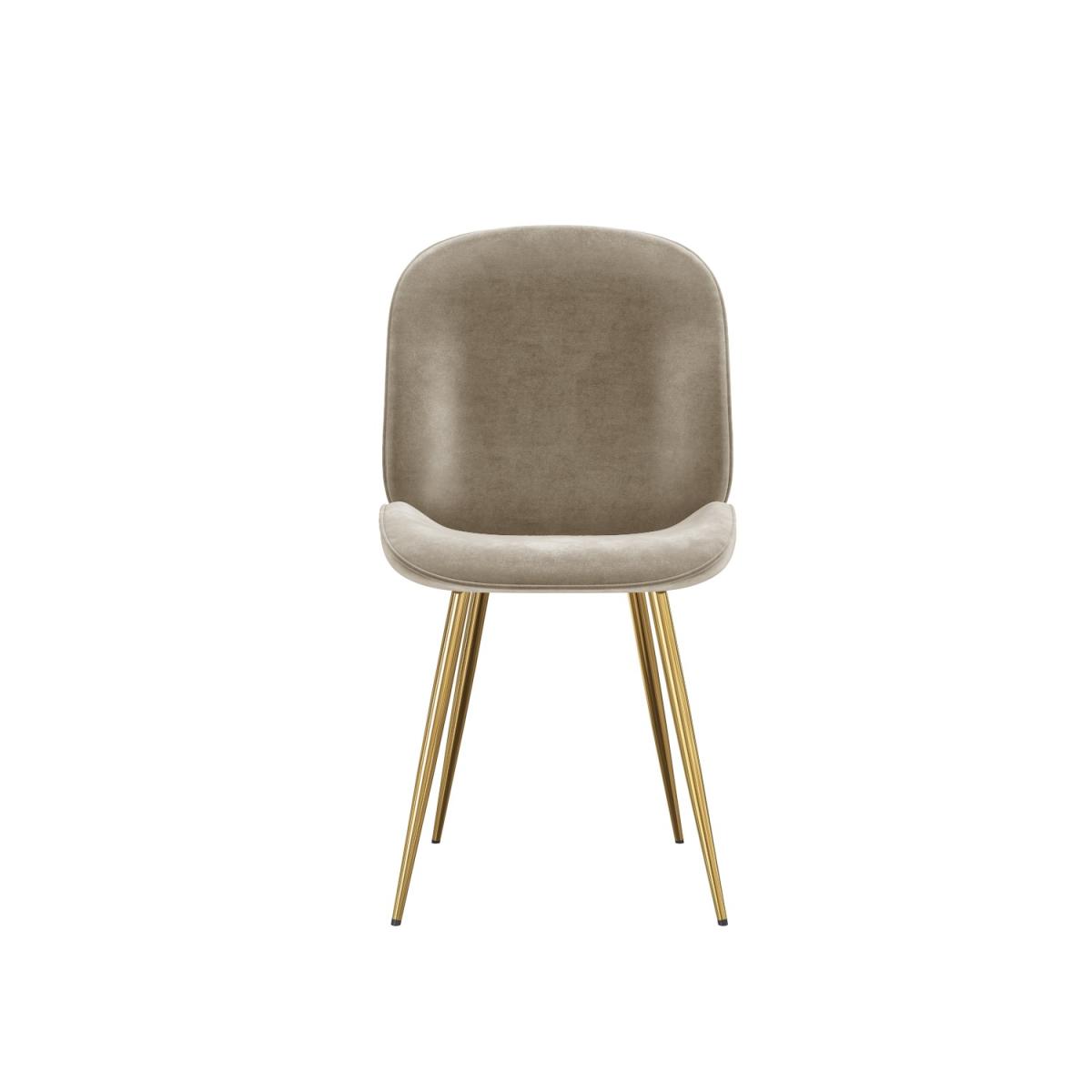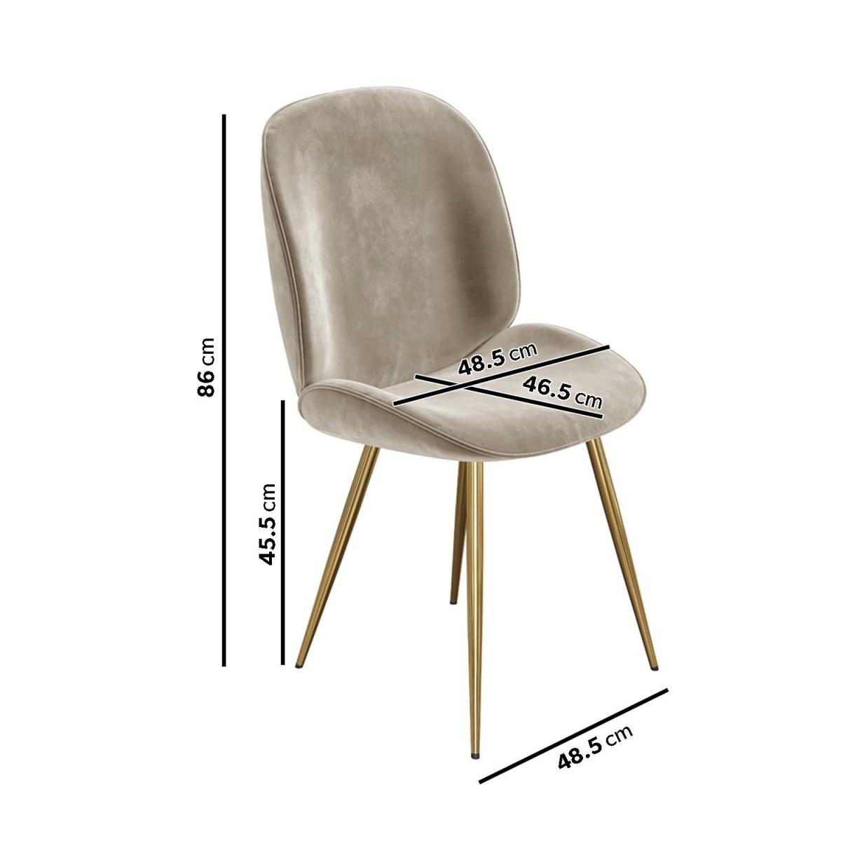 . All about me. Luxurious Mink Velvet Upholstery. Soft to touch mink velvet provides both comfort and a touch of luxury. Elegant Curved Design. The modern curved chair backs create a contemporary and stylish look. Contrasting Gold Legs. The combination of mink velvet and gold metal legs adds an elegant on-trend modern aesthetic. Durable Construction. Crafted from high-quality velvet and sturdy gold metal ensuring long-lasting use and resilience in a busy dining area. Versatile Style. The versatile design complements various decor styles and is perfect for dining rooms home offices or accent seating. The Jenna Dining Chairs offer a perfect blend of contemporary design and luxurious comfort making them a standout feature in any dining room. Upholstered in mink velvet and paired with contrasting gold metal legs these chairs exude modern elegance and sophistication. The curved backs not only add to the stylish appeal but also provide excellent support. Designed for durability they can withstand the demands of daily use ensuring they remain a long-lasting addition to your home. These chairs are sold in pairs allowing for easy coordination with any dining table making them an ideal choice for those looking to elevate their dining space with a modern touch Need to know. Number of chairs. 4 Dimensions. W51 x D61 x H86 cm Weight. 7.05 kg Max supported weight. 150 kg Colour. Mink Finish. Mink velvet and; gold legs Material. Velvet and; Metal Assembly required. Yes Packaging dimensions. W52 x D44 x H52 cm For domestic use only. Domestically UKFR certified..