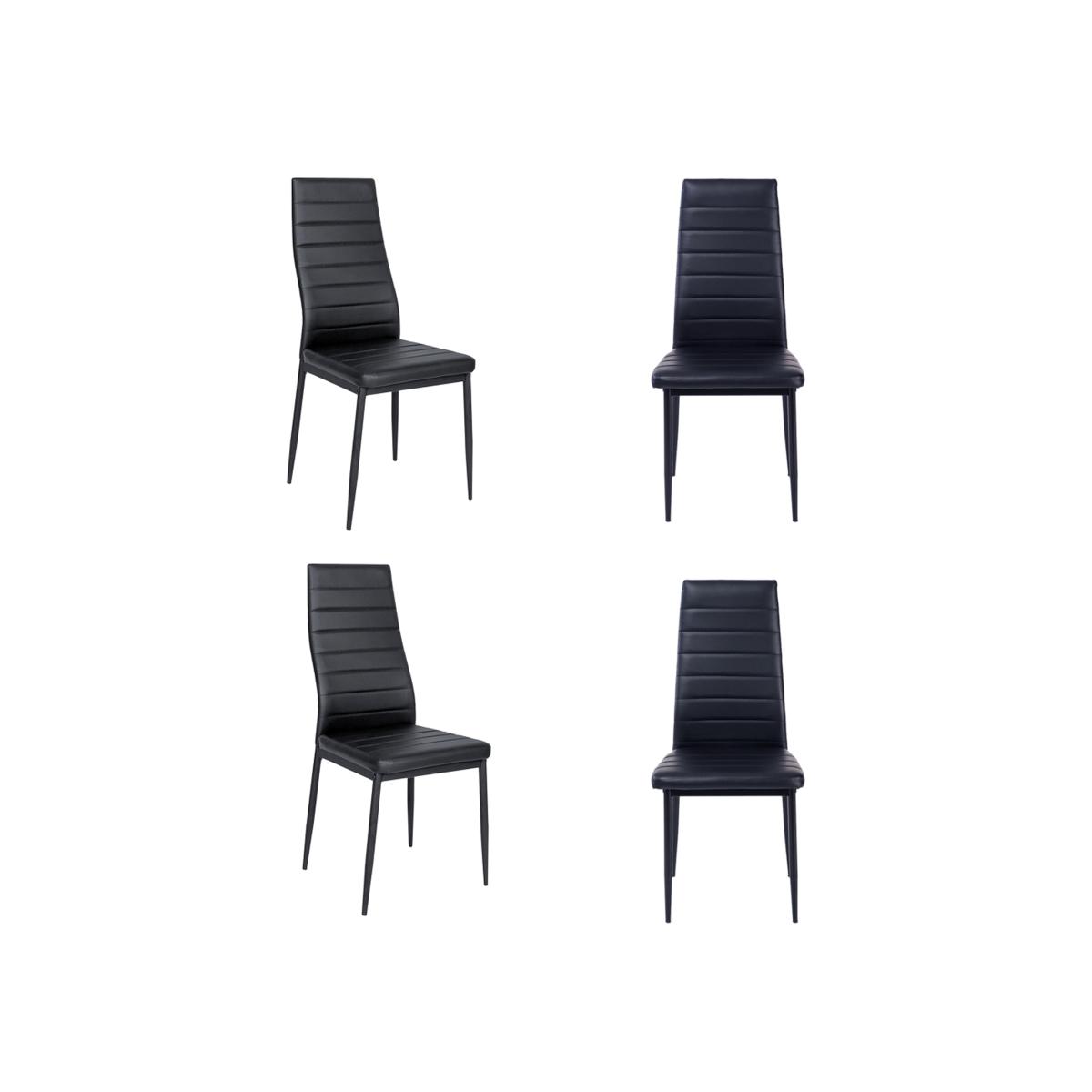 These Modern Armless Dining Chairs brings a modern touch to your dining space with their sleek silhouette and ergonomic design. The high back and dense foam padding offer lasting comfort, while the quilted faux leather surface promotes breathability. Black metal legs ensure stability and durability. Perfect for everyday meals or formal dinners, these chairs suit a variety of interior styles effortlessly.